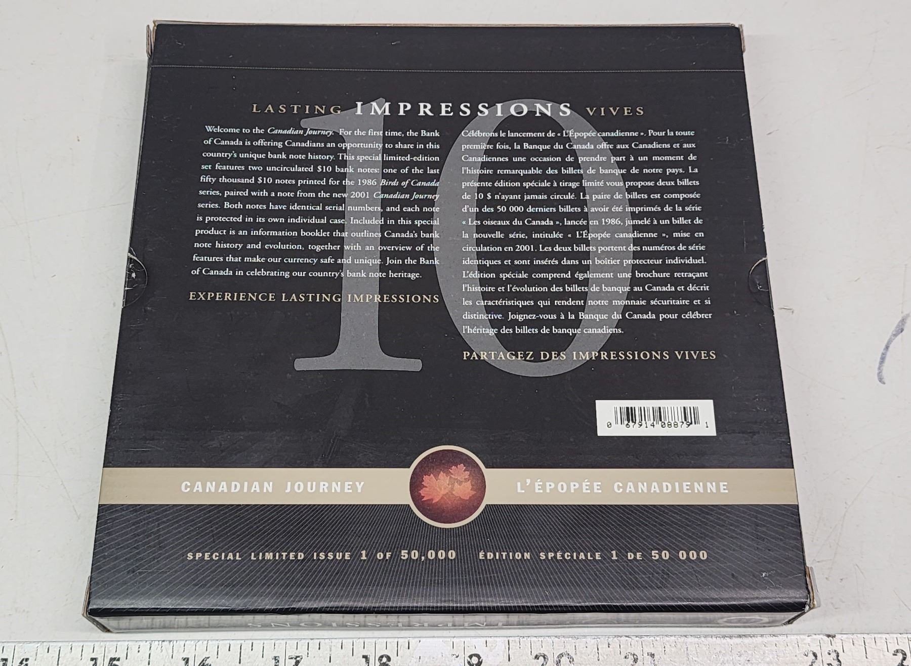 Limited Edition "Lasting Impressions" Dual 1989 & 2001 uncirculated Canadian 10 dollar bills - Matching serial #'s - BEH 6495190