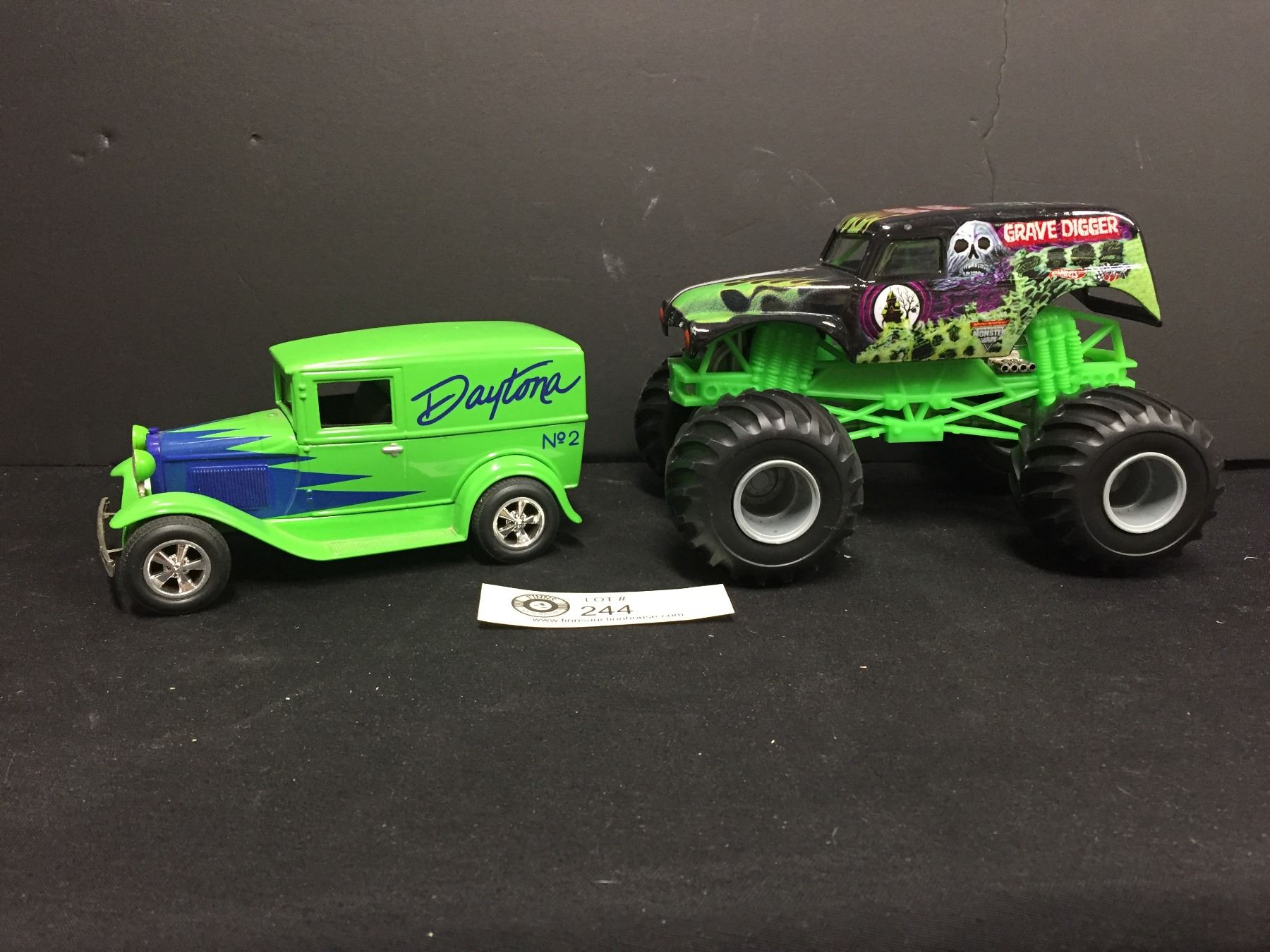Limited Edition Liberty Classics . Number 2 Ford Model A Pick Up Truck. Panel Truck. Plus the Gravedigger. Diecast Monster Trucks Both in Great Shape