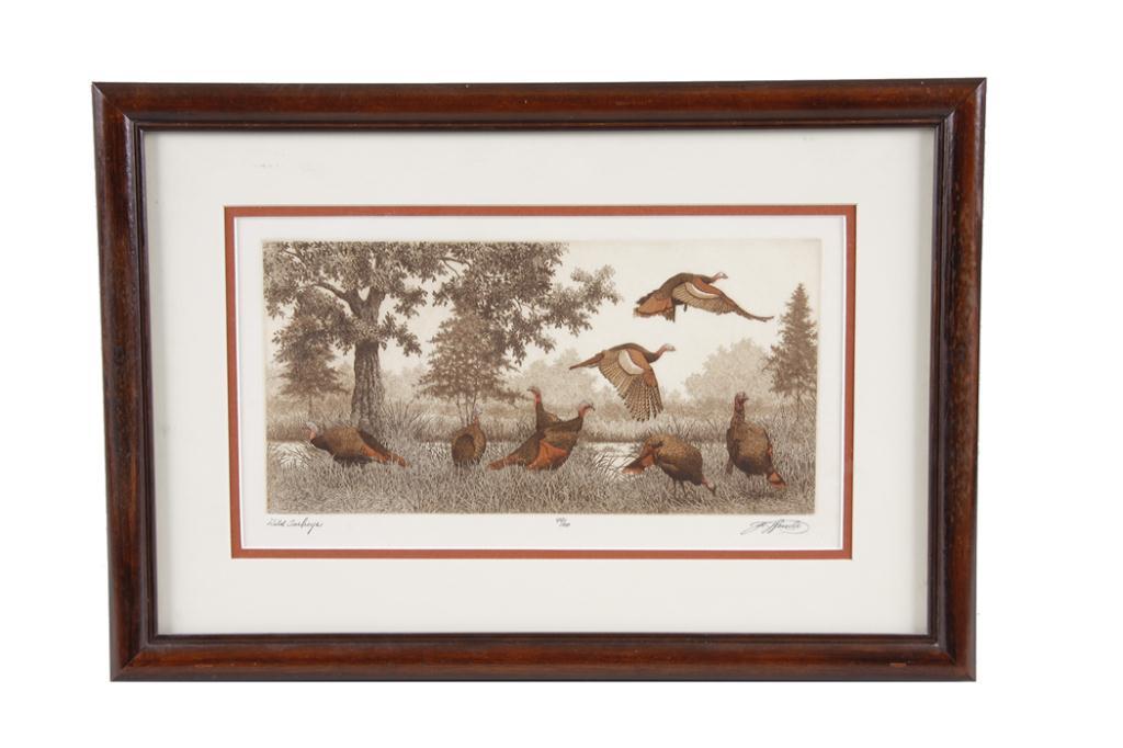 Limited Edition Lithograph #99/100 Entitled "Wild Turkeys" by Joe Hessell, signed lower right hand c