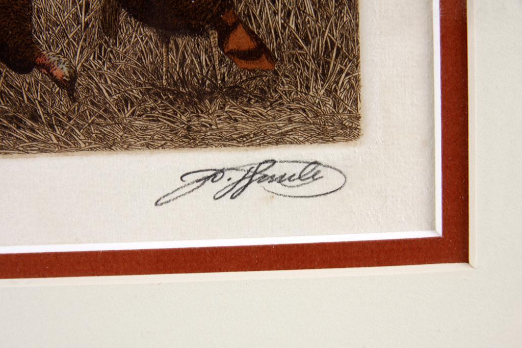 Limited Edition Lithograph #99/100 Entitled "Wild Turkeys" by Joe Hessell, signed lower right hand corner, image size is 12"x7", double matted and framed.Entitled "Wild Turkeys" by Joe Hessell, signed lower right hand corner, image size is 12"x7", double matted and framed.