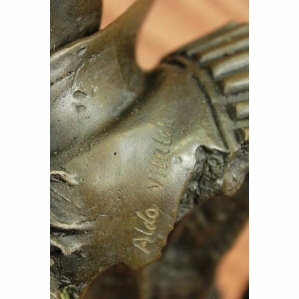 The late Michael Jackson was crowned the King of Pop long before his death. Here he is in one his most iconic dance moves. This gesture has been copied and incorporated into choreography year after year. Michael's dancing, music, and life influenced artists all over the world will continue for years to come. This Limited edition, 100% bronze sculpture sits on a black marble base and is signed by artistAldo Vitaleh. It was crafted using the lost wax method. Condition : This sculpture is in perfect condition. Bronze Dimensions with Marble Base:Height 23" x Width 15" Marble Dimensions: 8" x 6" Height without base: 19" Weight : 40 LBS Inventory : 45YRD89915054
