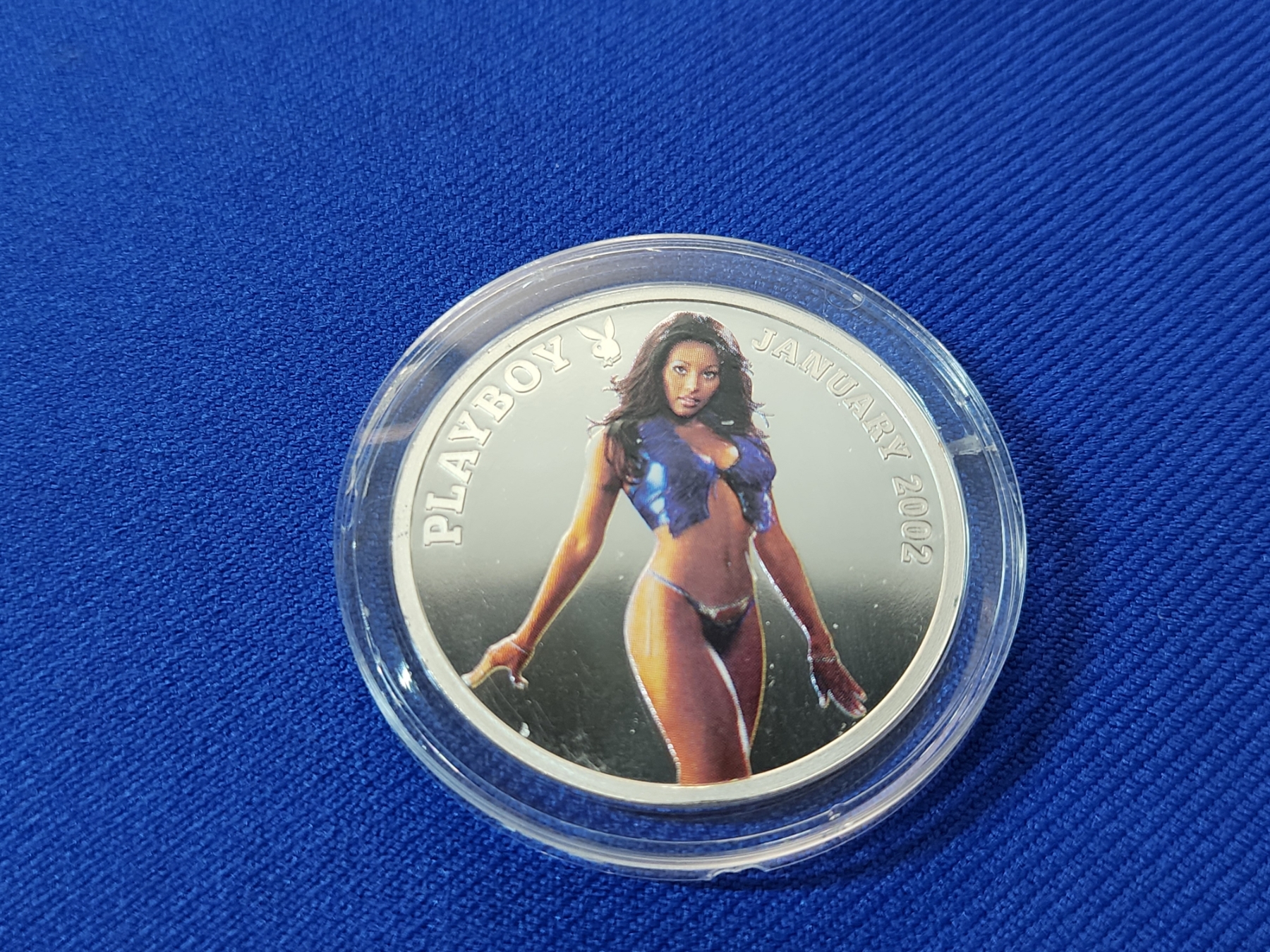Limited Edition! Playboy January 2002 1 oz Silver Round with Colorized Model Photo In Capsule