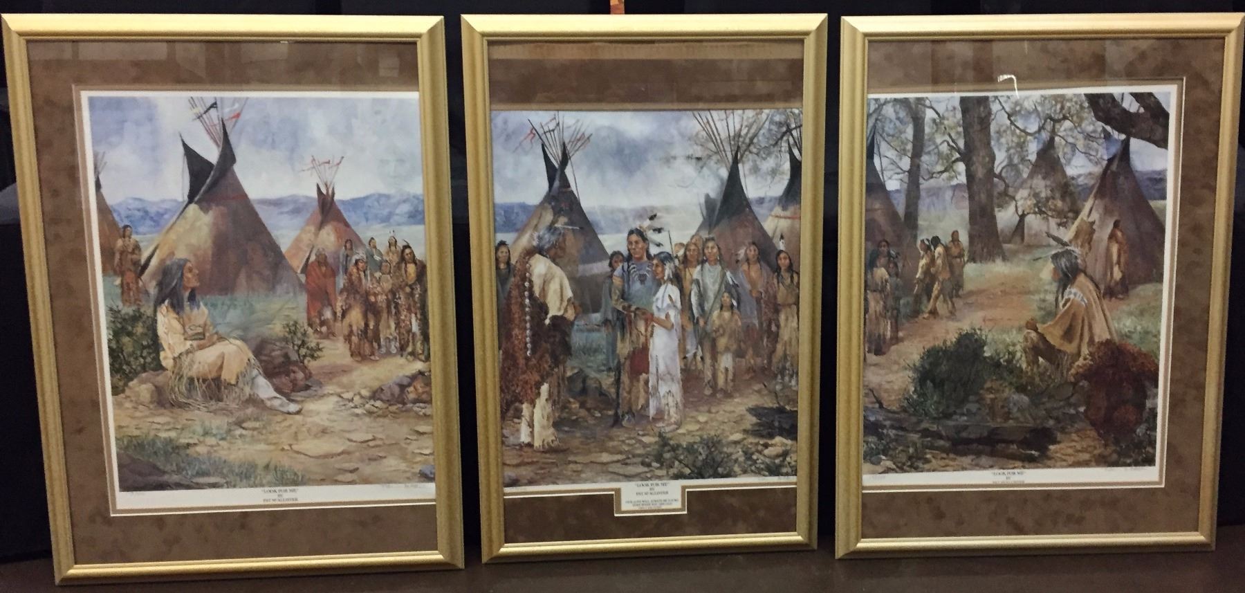 Maker: Pat McAllister. Approx. Age: Fairly Modern Size: (1) 18 1/2” x 29” (2) 21” x 29”, includes frame. Additional Info: #173 of 500 limited edition, 3-piece prints. Condition: Pretty good for its age, normal wear expected. One of them has slid in the frame. Please look closely at the pictures - they are an important part of our description. Shipping: There will be a $15 handling / packaging fee for shipping this lot. The actual cost of postage will be added on top of that.