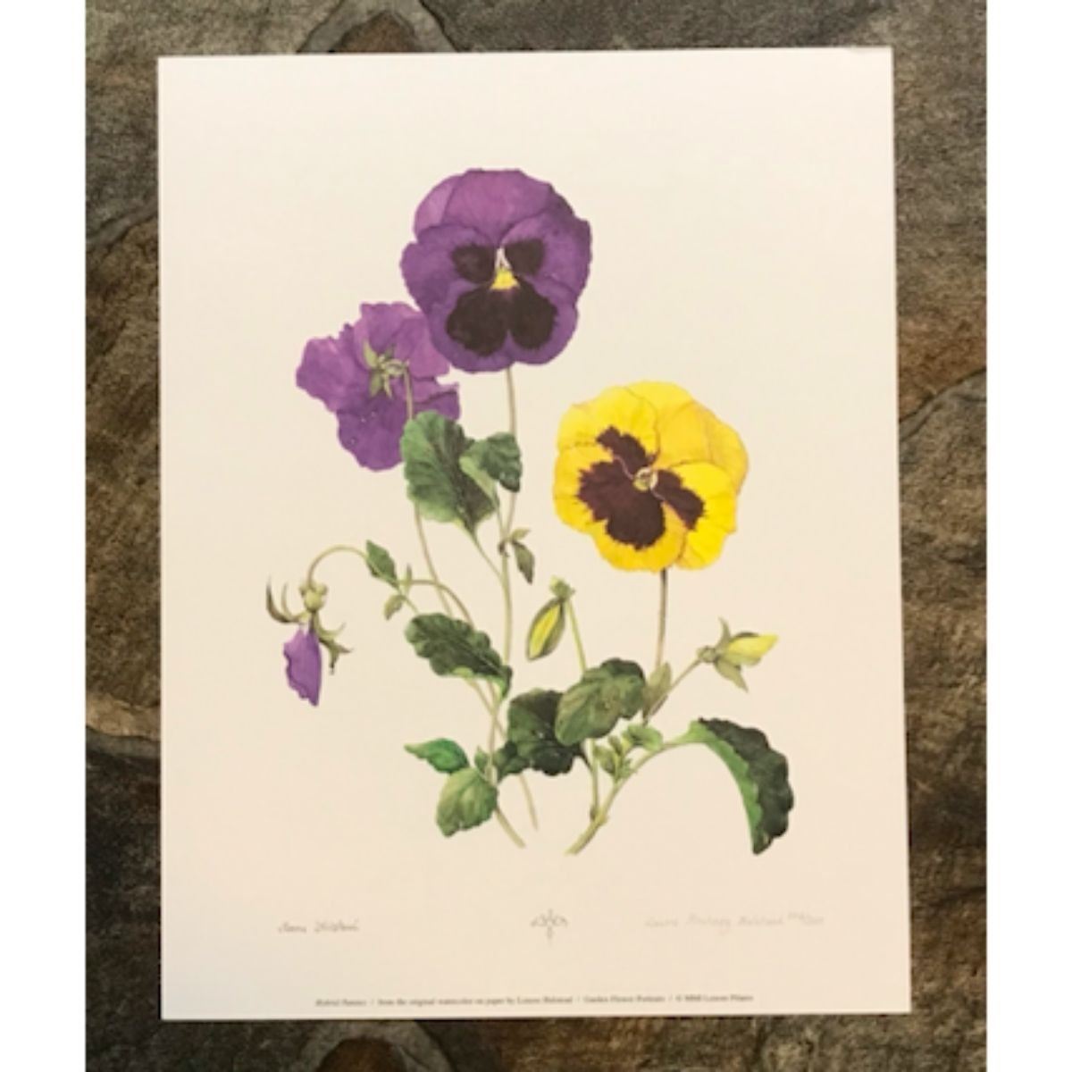 Lenore Pinckney Halstead Pilares, "Hybrid Pansies" from the original watercolor on paper by the artist, from her Garden Flower Portraits collection. Limited edition printing of 250, dated 2001. 10" X 13". Comes with information sheet on the artist.