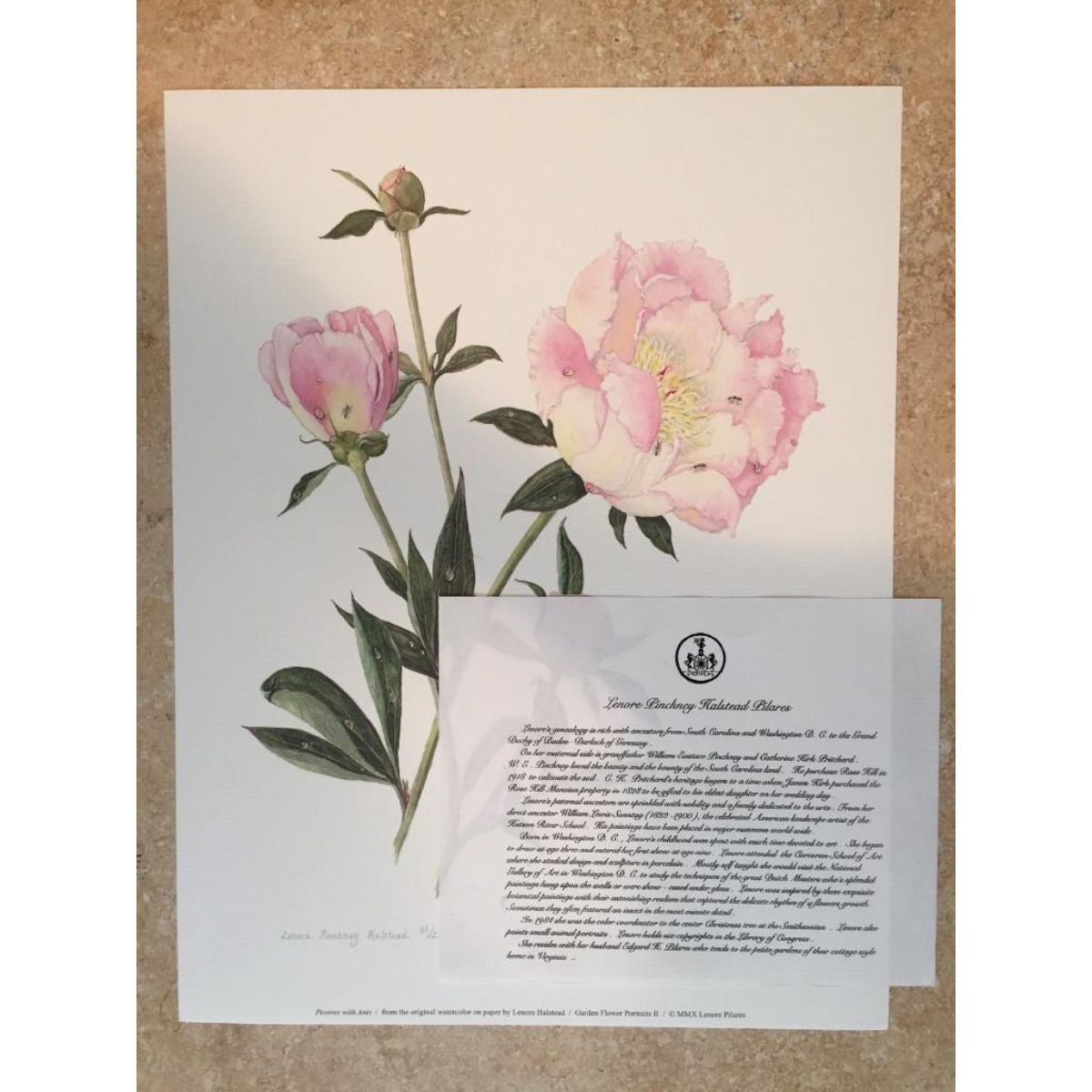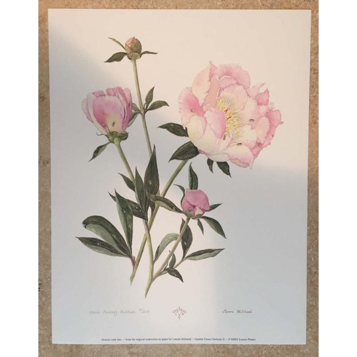 Lenore Pinckney Halstead Pilares, "Peonies with Ants" from the original watercolor on paper by the artist, from her Garden Flower Portraits collection. Limited edition printing of 250, dated 2001. 10" X 13". Comes with information sheet on the artist.