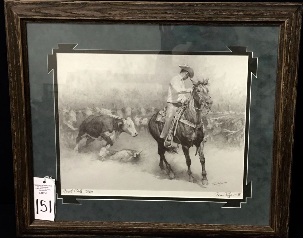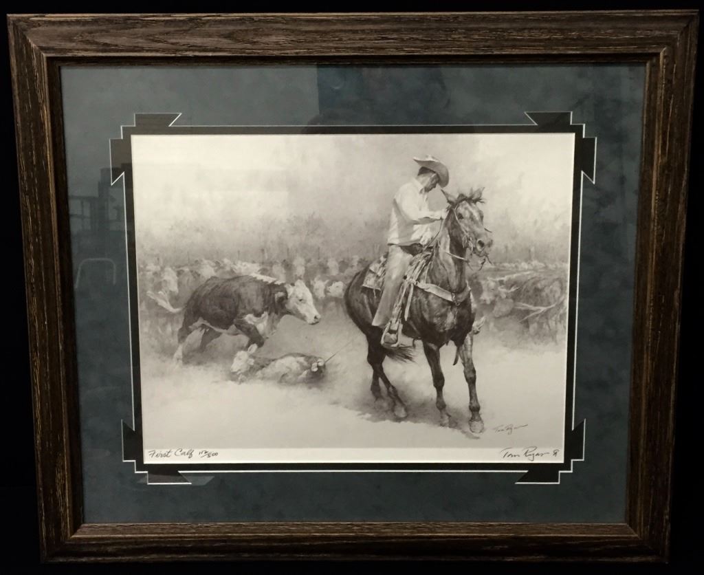 This limited edition (112/500) print is titled “First Calf”. It is hand signed by the artist. It measures 26.5" x 23" including the frame. Under glass. Please look closely at pics as they are an important part of our description. Shipping: There will be a $10 handling / packaging fee for shipping this lot. The actual cost of postage will be added on top of that.