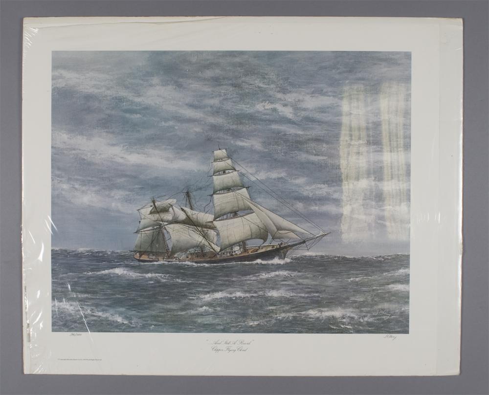 Titled "….And Still A Record," depicting the Clipper Flying Cloud. 20" H x 25.5" W (sight), signed in pencil in LR, edition 596/1000 in pencil in LL.