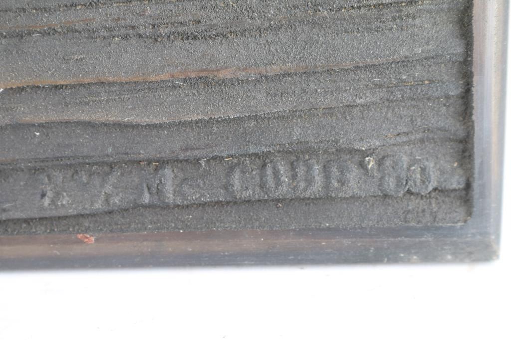 Signed and dated "P. W. MCCOBB '80" in the lower right corner, for artist Paul W. McCobb who was authorized by the Winchester Repeating Arms Co. to produce 260 of these commemorative plaques before the company dissolved later that year. The artist estimates less than 100 were actually cast. This example is numbered "2". It boldly features a Winchester 1866 carbine in the center with the classic horse and rider logo in the upper left and "WINCHESTER" script logo below. Raised elements are polished bright, with the background and gun stocks finished matte gray for contrast. Plaque is 33 - 3/4" x 14 - 1/2". 70 Lbs. Bronze is still mounted in its original shipping crate. CONDITION: Plaque is excellent with bright brass surfaces and nearly all of the background finish retained. Shipping crate shows wear and chipping from storage and transit. This is not a standard shippable item and will require 3rd party shipping or pickup arrangements to be made.