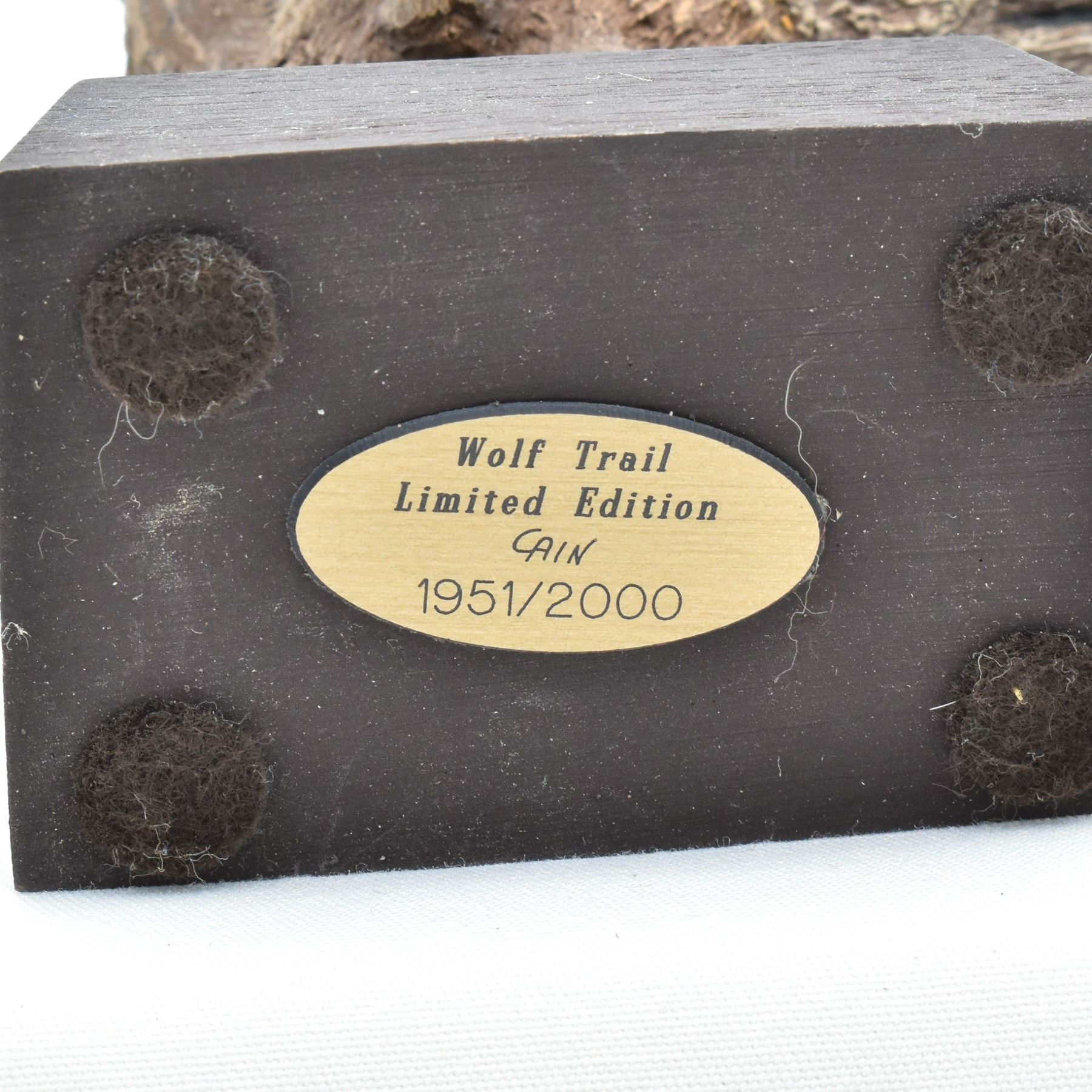 Limited Edition "Wolf Trail" Statue by Rick Cain, #1951/2000, marked on the bottom, measures 2" x 3" x 6", mounted resin