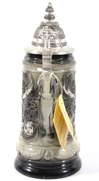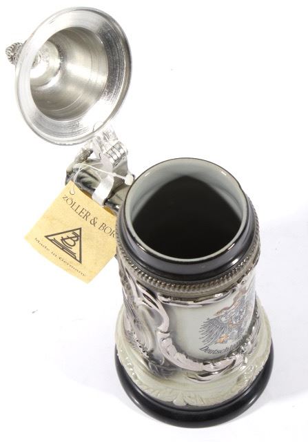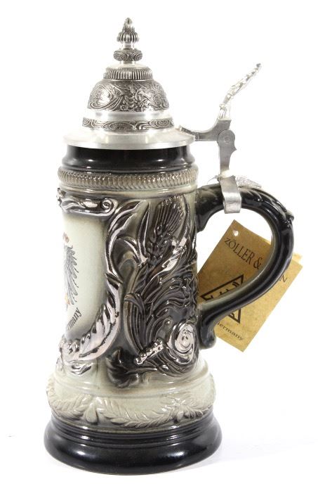 Featured in this lot we have a Zoller & Born limited edition beer stein. This hand crafted stein shows wonderful floral carvings with the front of the piece showing a German crest with the words "Deutchland- Germany". The piece shows wonderful hand painted colors and is marked across the bottom reading "Made In Germany P P". The stein comes with a limited edition tag and shows new condition. The stein measures 9" tall by 3 3/4" in diameter at the base.