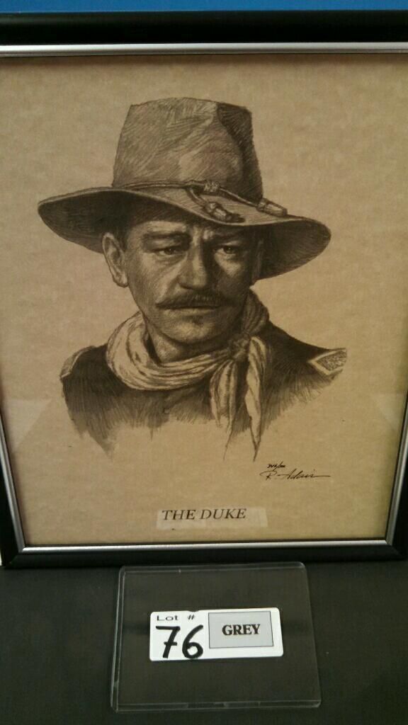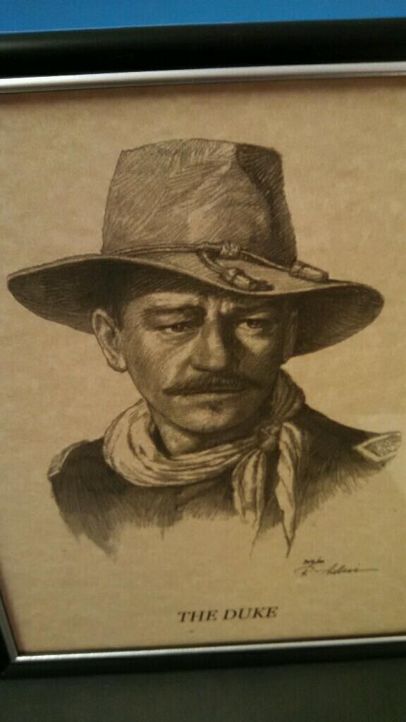 8 X 10 Framed movie illustration of John Wayne as Captain Nathan Cutting Brittlesin She wore a yellow ribbon by Ron Adair (1949). Numbered limited edition print with a copy of a personal letter from the Duke himself dated 5/6/69 regarding this art and a Biography of the artist