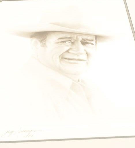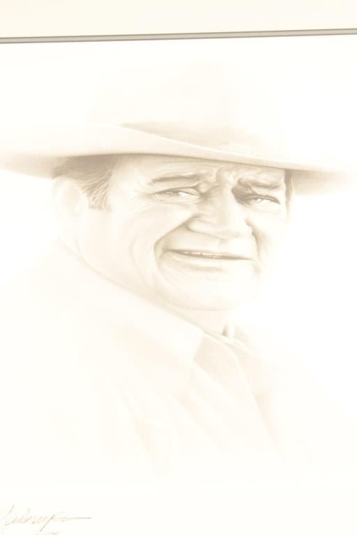 Limited edition lithograph of older John Wayne signed “Gary Saderup” and dated 1980. Est.: $150-$300