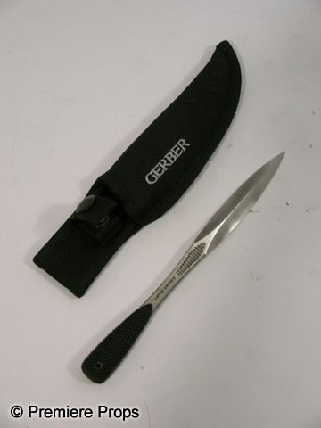 Straight from the set of Limitless, this is Gennady (Andrew Howard) screen used, skinny thin pointed with blades 'Gerber' knife with sheath. (approx. 8" long)