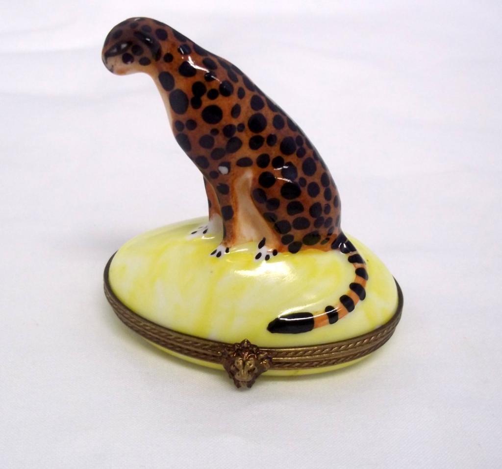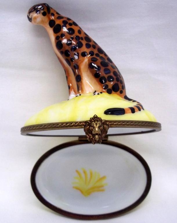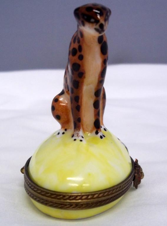A cheetah adorns this trinket/jewelry box. Retail value: $150-
