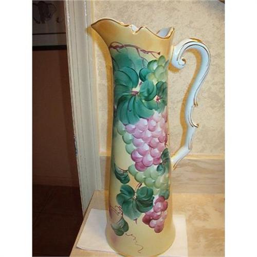 This is a Beautiful Tankard Showing A Large Grape Design on each side (see Pics.) The Bottom Stamp has a Fluer Design Limoge China. I Do not Know the Manufacturer, But I Feel it is 20th. Century
