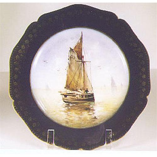<tr><td>Title:Limoge cabinet plate with spectacular sailboat</td></tr>