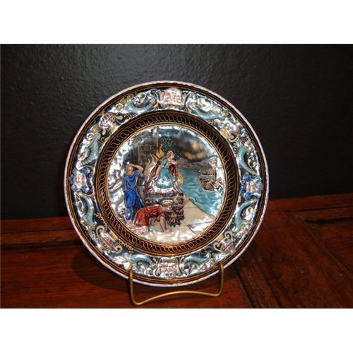 Limoge enamel dish on copper depicting the death of Didon. Titled "Mort de Didon." Minor repairs to the white enamel on rim. Diameter is approx. 8 3/8 inches.