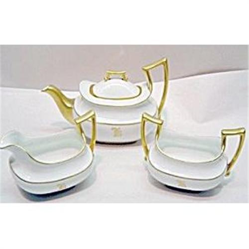 Limoges 3 Piece Monogramed Tea Set, has a K, all 3 pieces in excellent condition, T and V Limoges, the tea pot is 4" tall to the top of the lid, all the gold in excellent condition, looks to have been never used.. <BR>