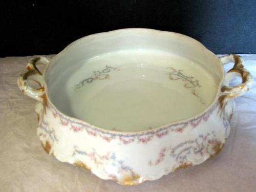 (French) Limoges Haviland and Co. marks verso, both pieces blue and pink flowers with gold leaf, dish 8" by 1", bowl 7" by 2".