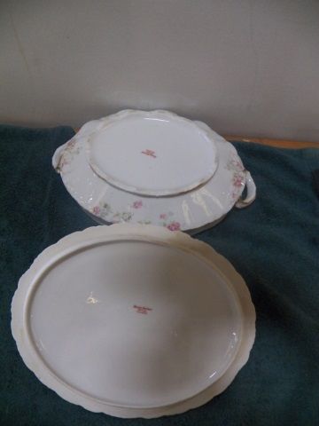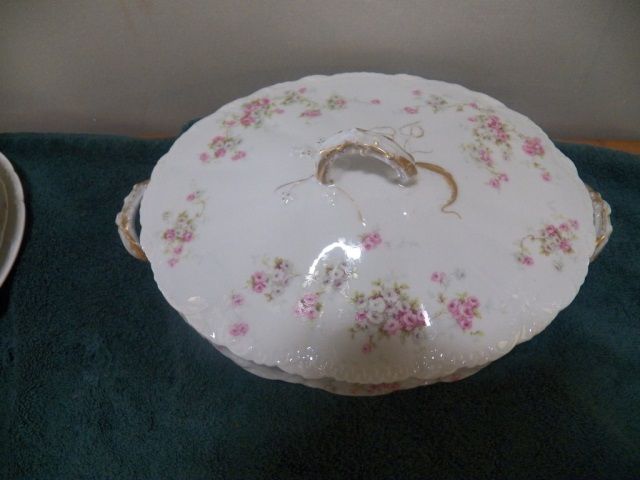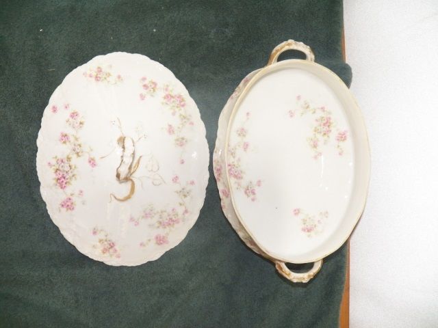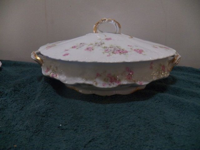 Vintage Haviland Limoges Covered Serving Dish approx 9" across. Pink Rose-Scalloped 7 Gold Gilt