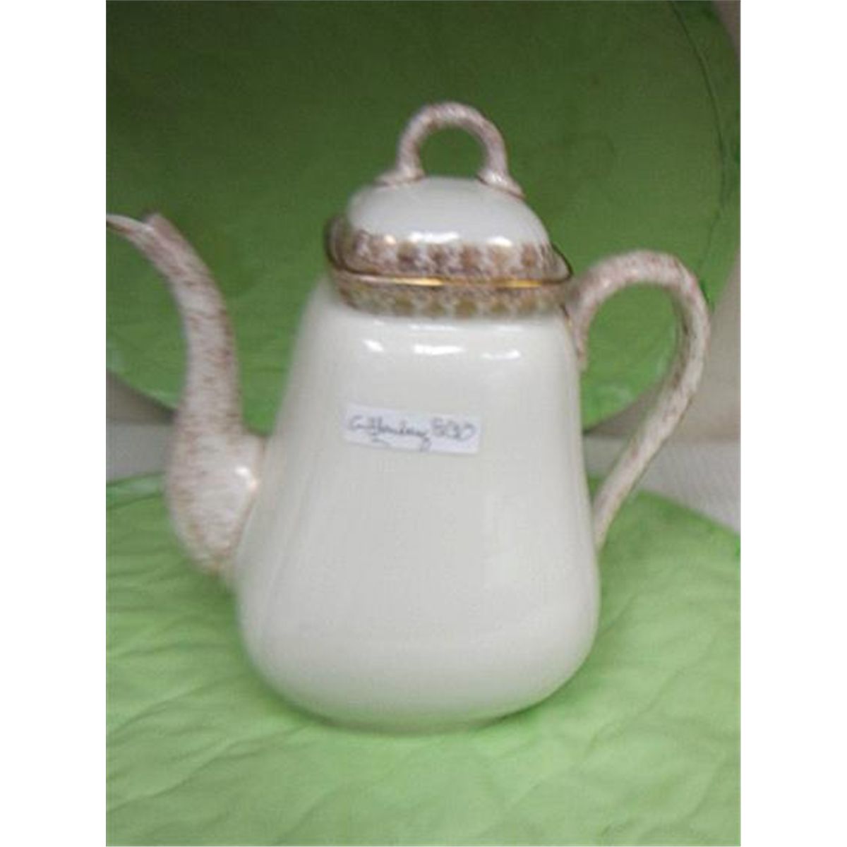Limoges France Coffee pot white with gold trim and speckled spout and handle 10 tall green arrow mark