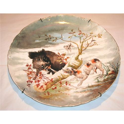 This beautiful Limoges J. Pouyat plate has a very important size. It?s painted by hand representing a hunting scene. Ideal for decoration.