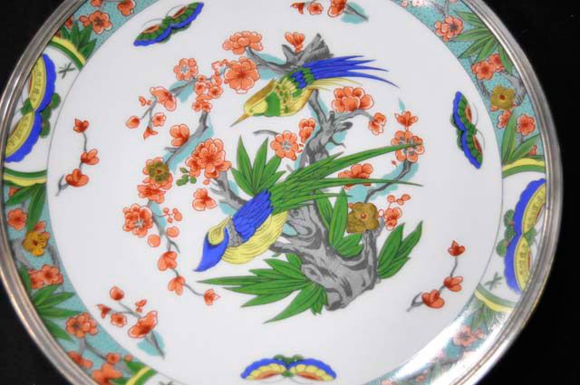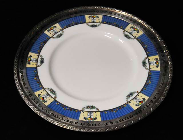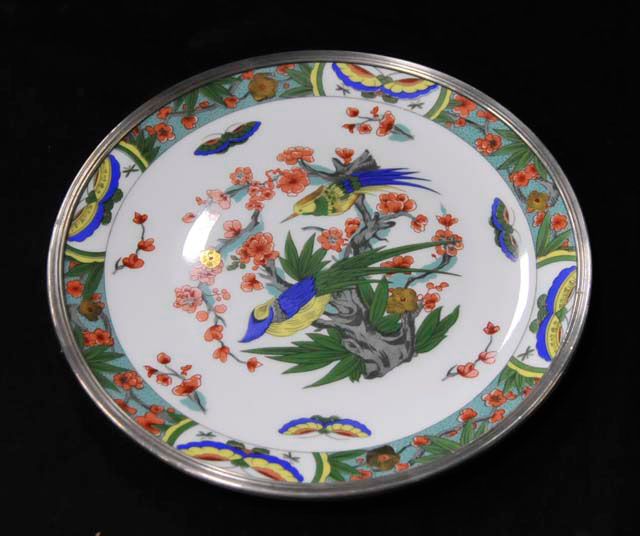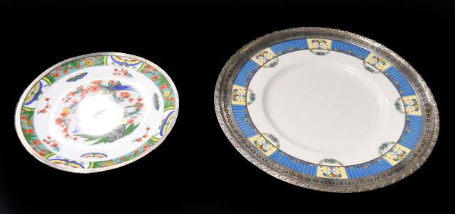 1- Limoges dish in frame depicting "Birds", approx. 8.5" Diam. 1- Lenox dish in fancy sterling silver frame, approx. 12". From a Sutton Place, NYC estate. Please read our terms of sale.