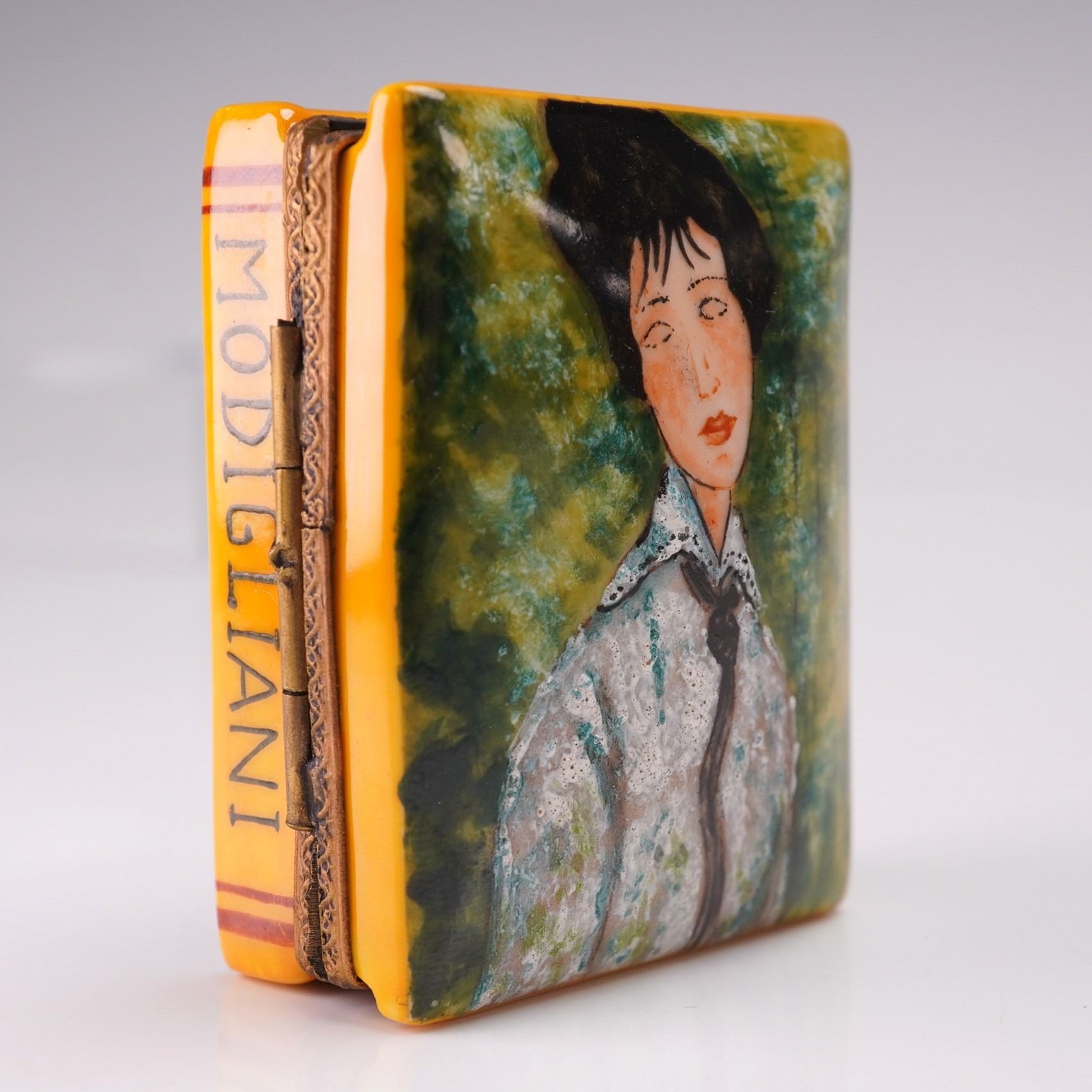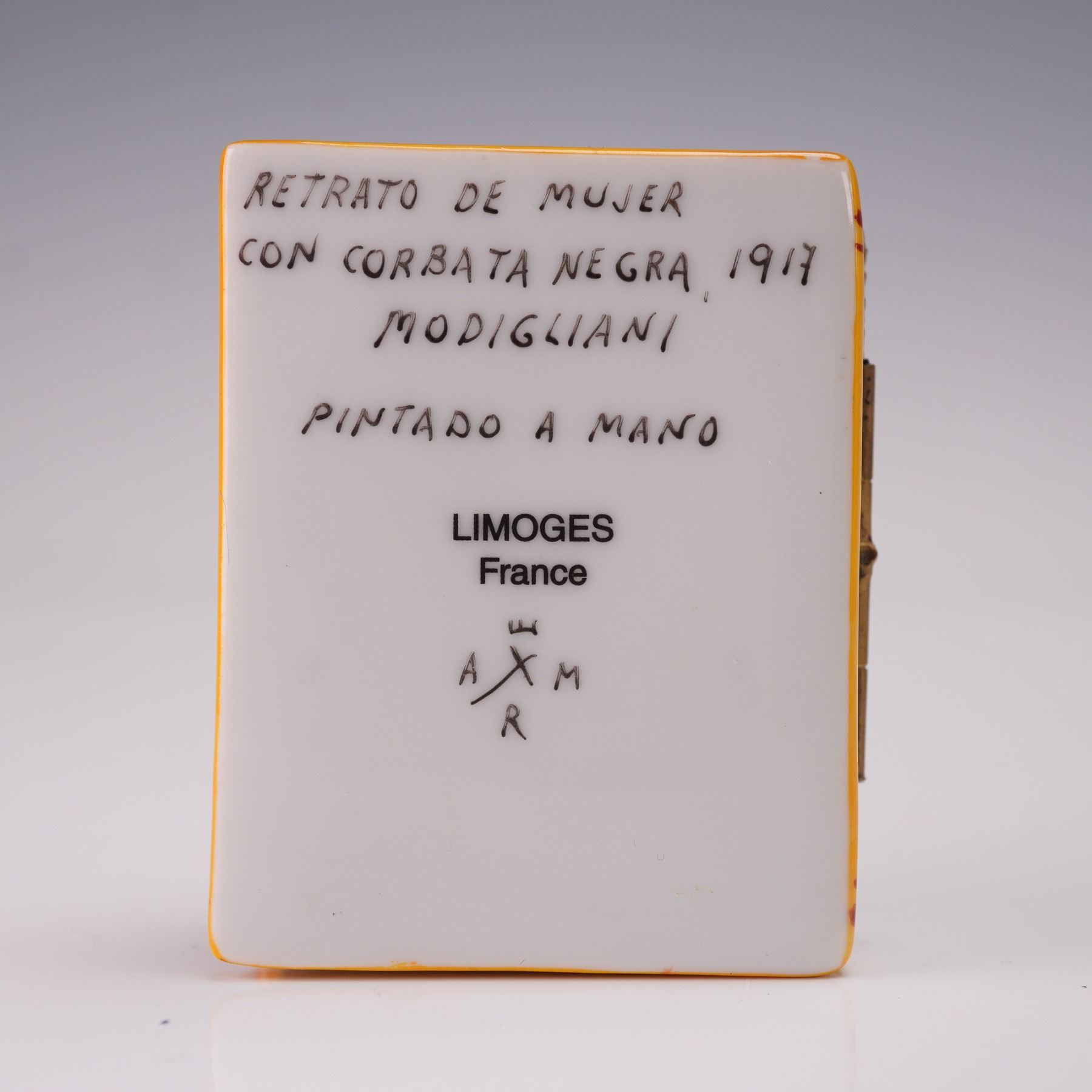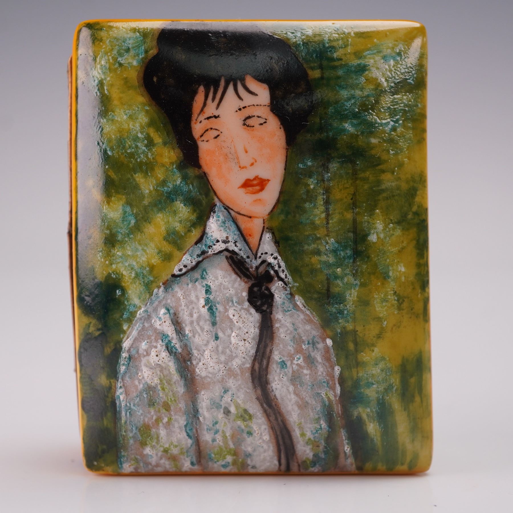Limoges Miniature Trinket Box, Portrait of a Woman with Black Tie