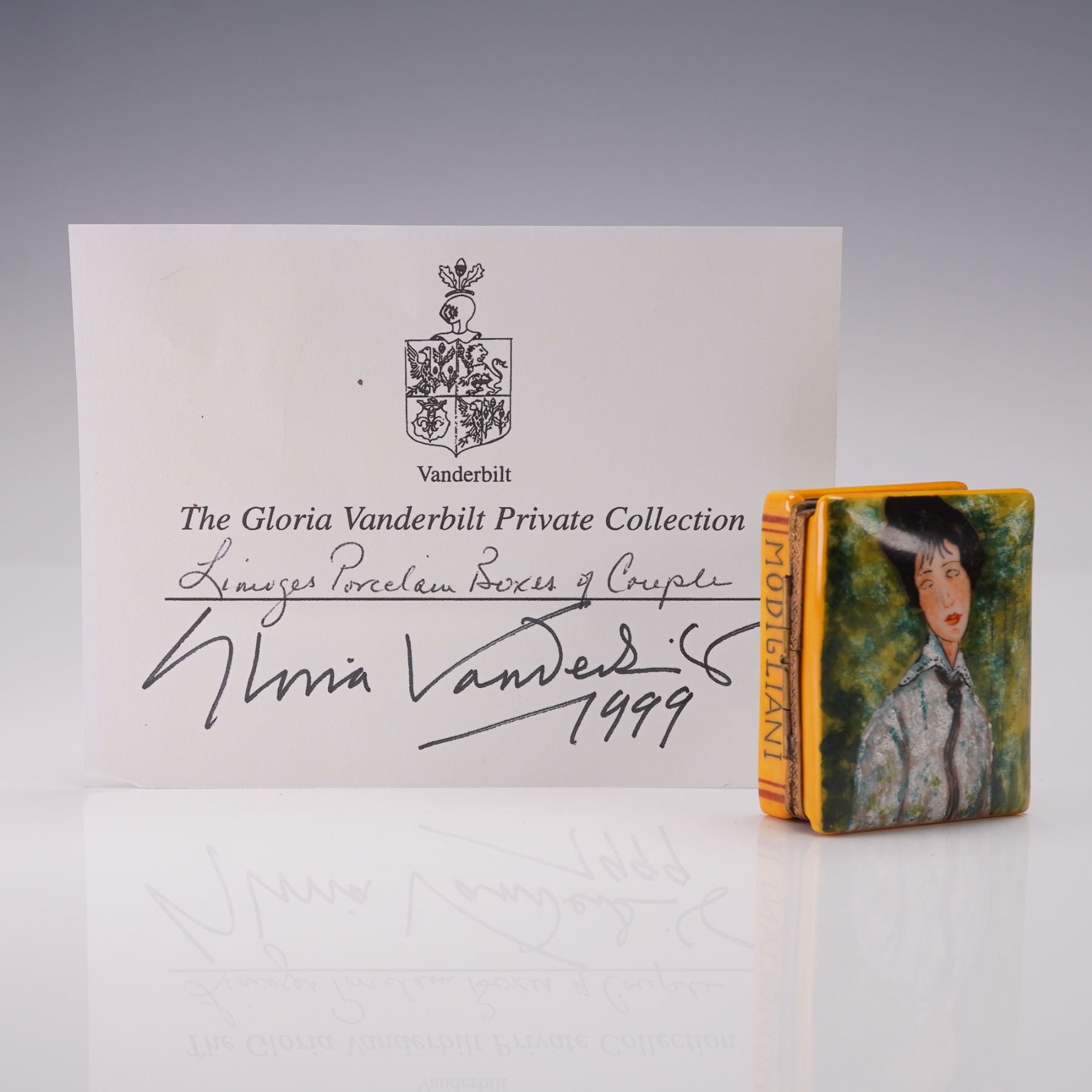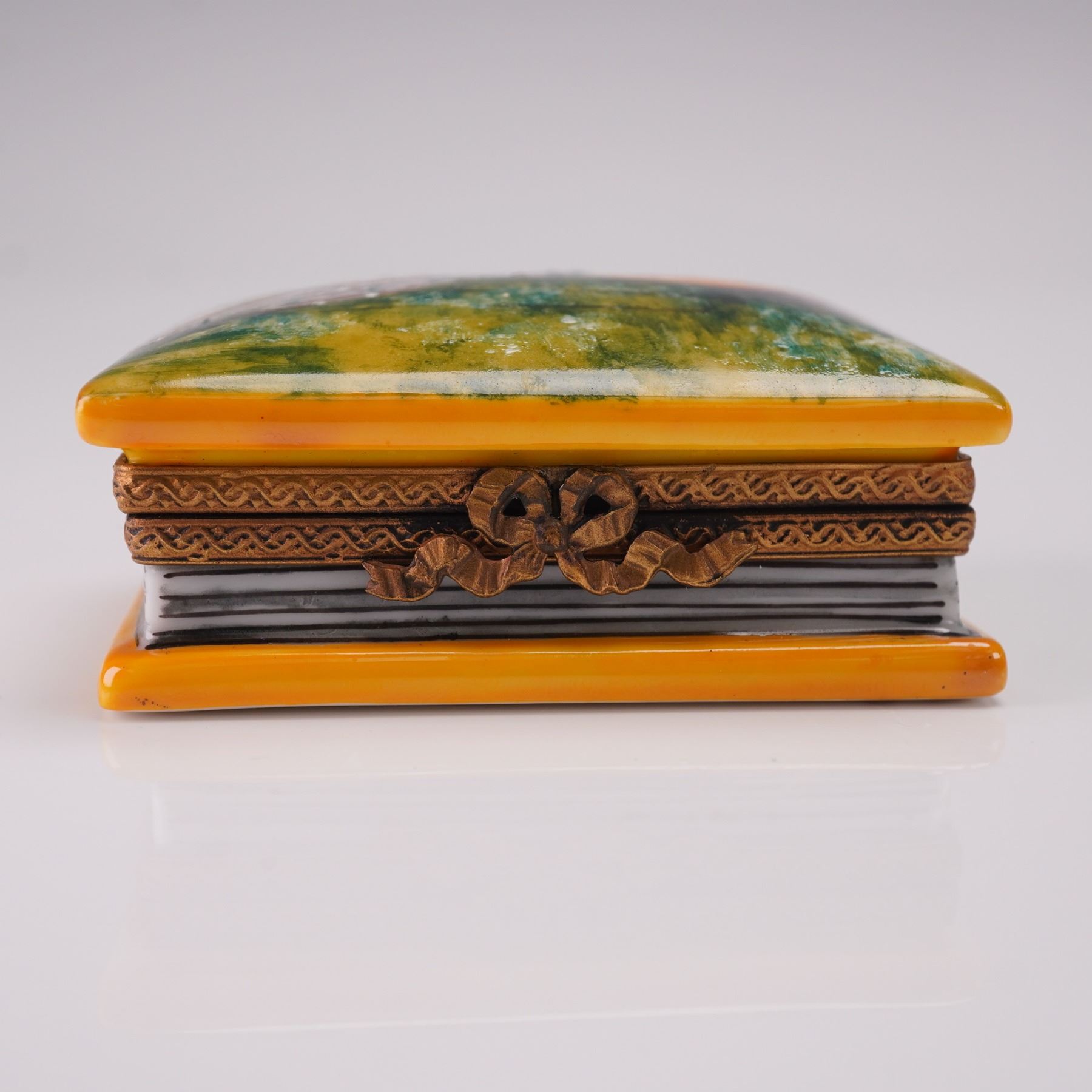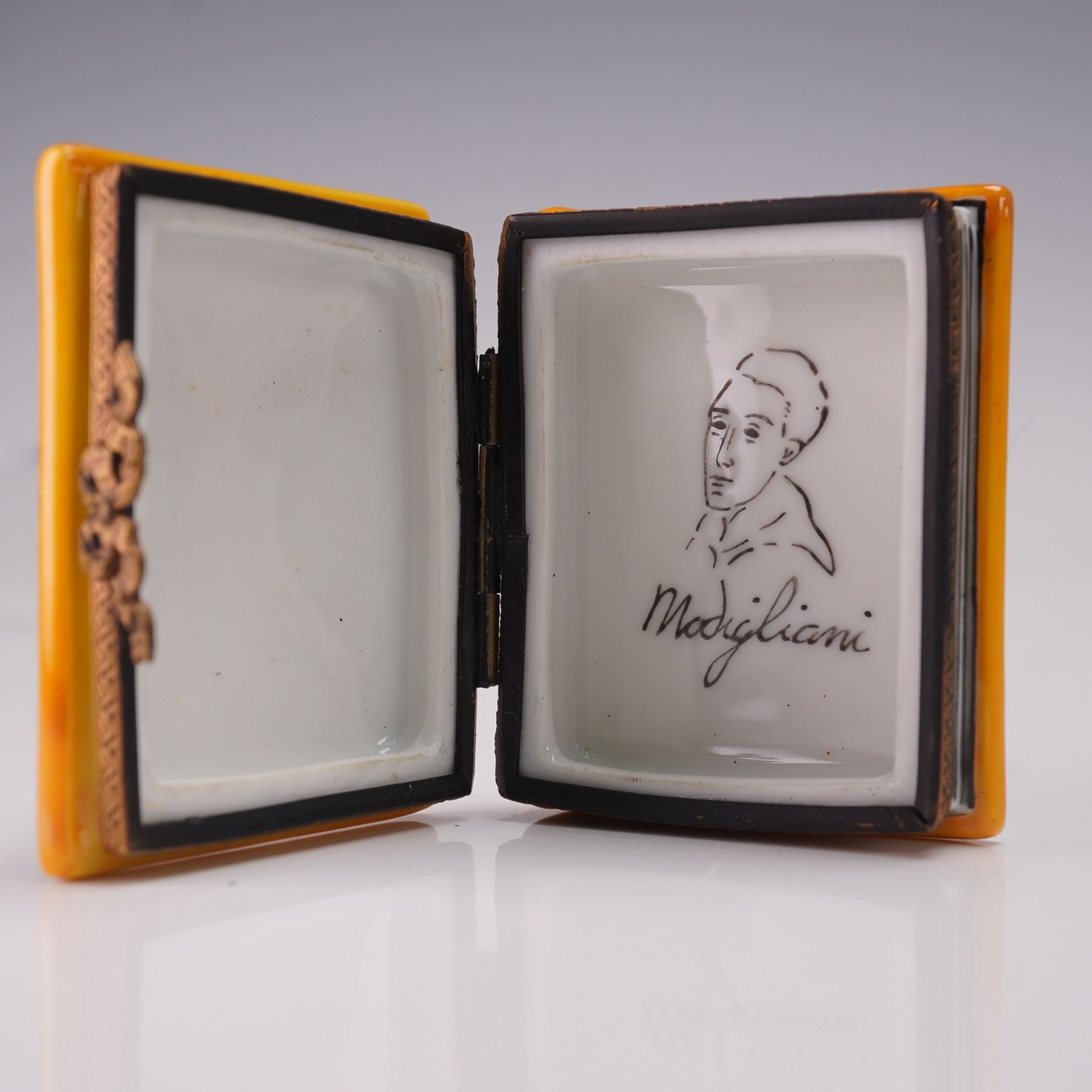 Limoges Miniature Trinket Box, Portrait of a Woman with Black Tie