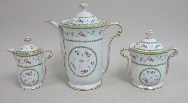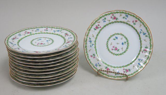 Including tea pot, covered sugar bowl, creamer, 9 cups, 12 saucers, 12 dessert plates and 1 cake plate. 37 pieces total.
