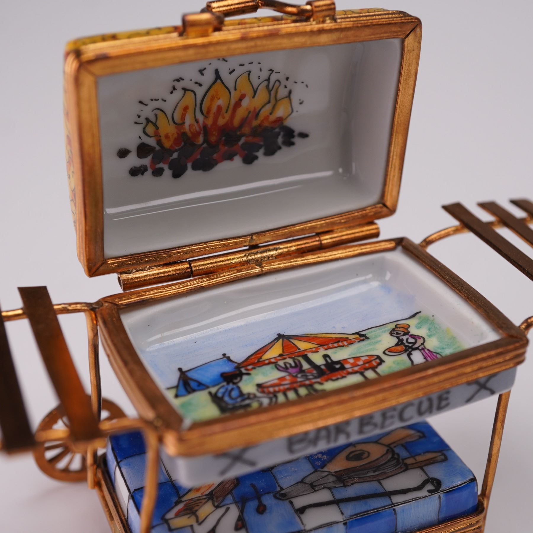Limoges Porcelain Trinket Box, Barbecue Grill with Picnic Scene