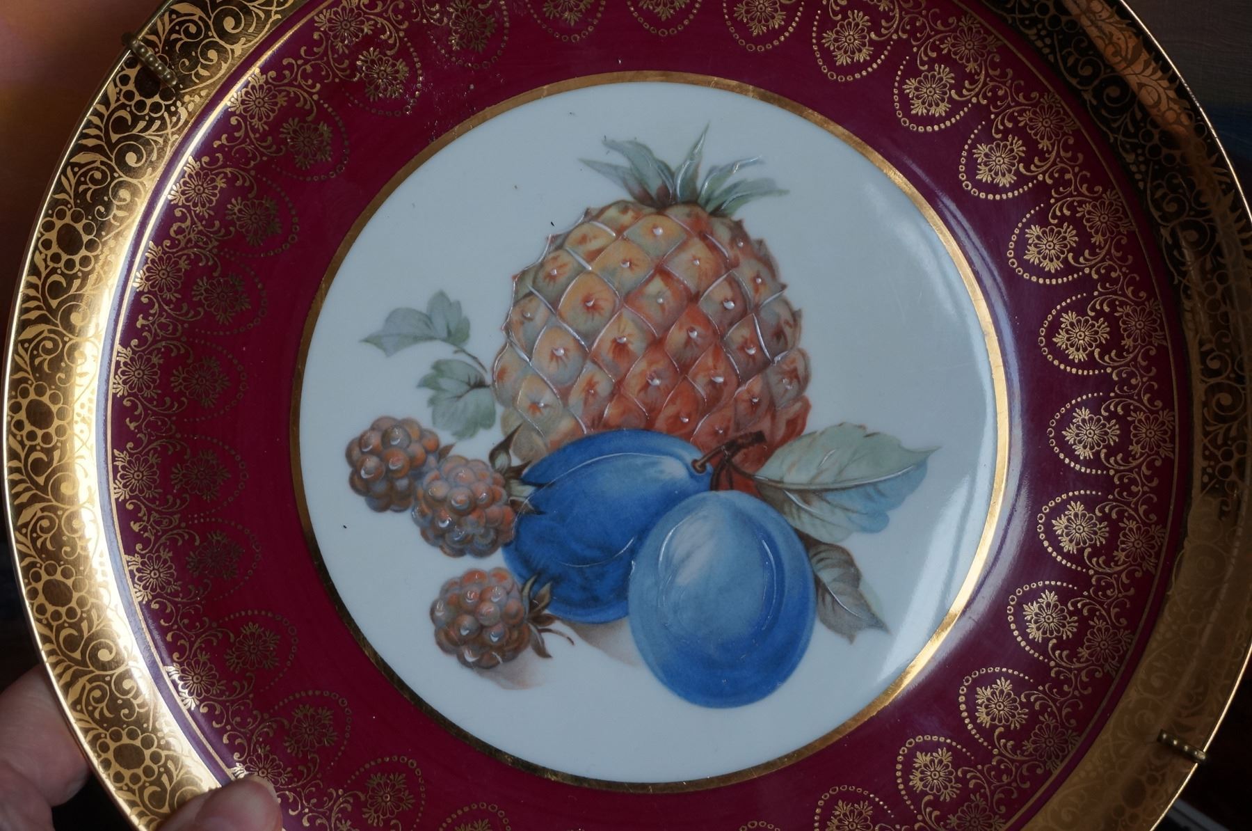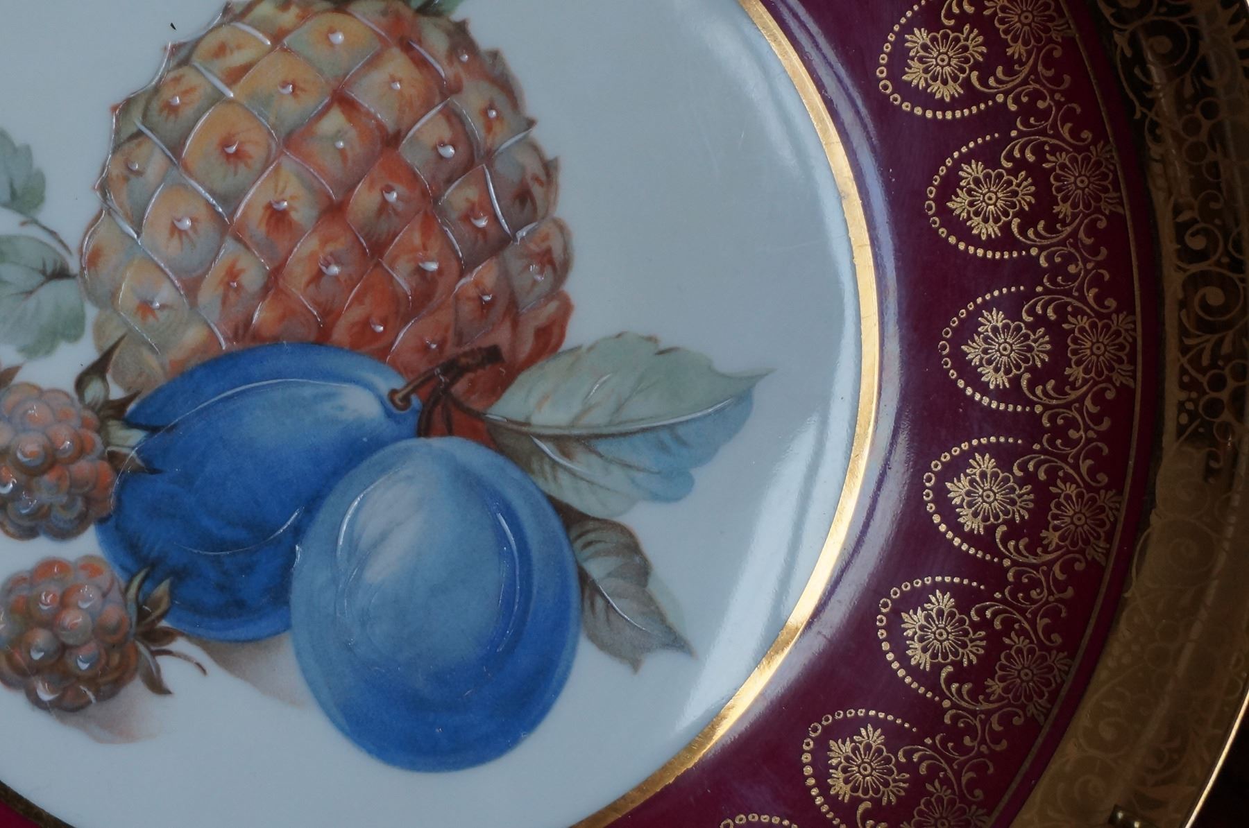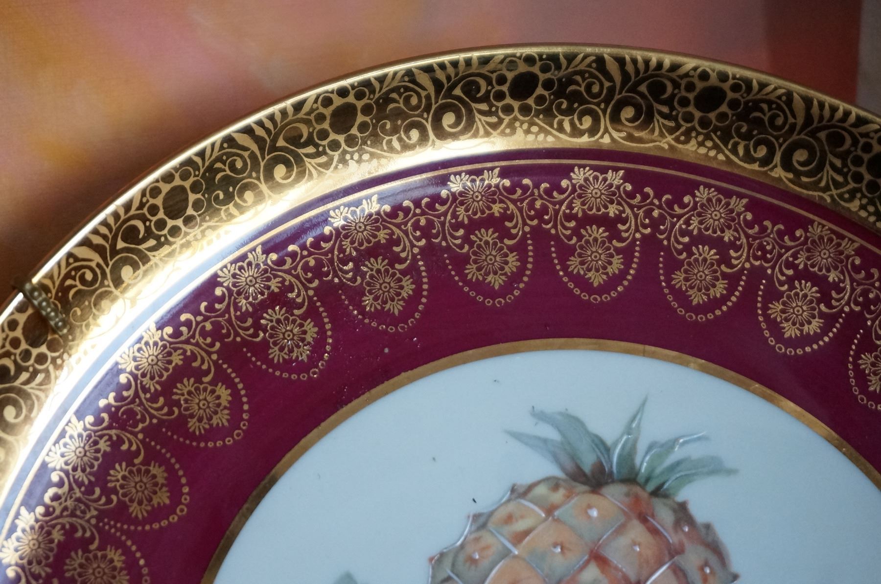 Limoges Rehausse Main Painted Plate, Still life with pineapple and plumps,Cabinet Plate