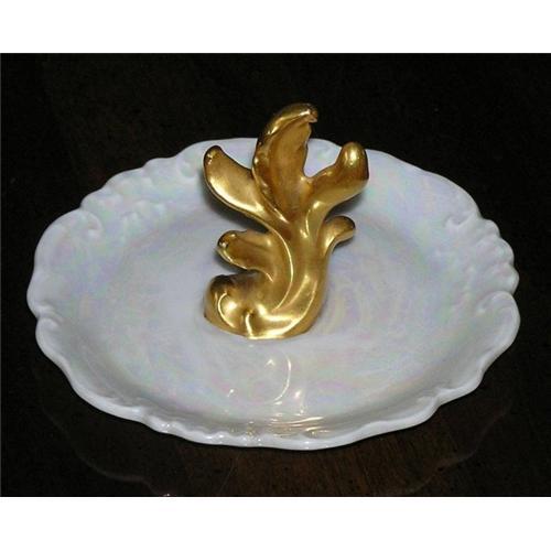 Beautiful Limoges Ring Tree. Luster with gold. Marked "Limoges, France" with the date 11/28/17, and the initials REH - probably the painter. 3-1/2" in diameter Shipping is determined after checkout.