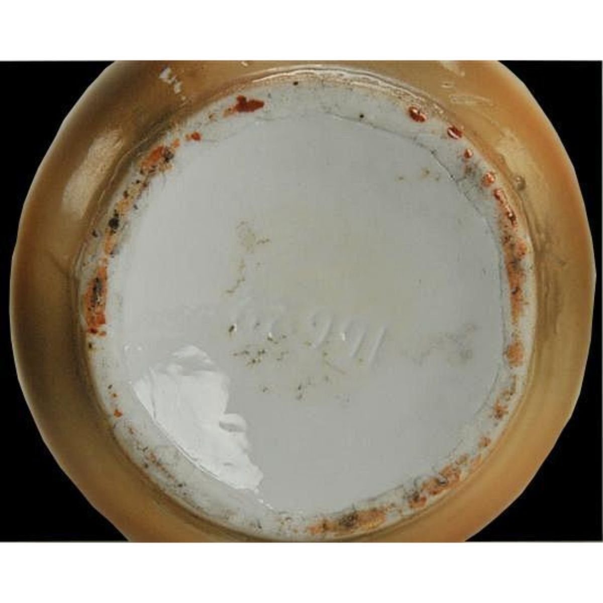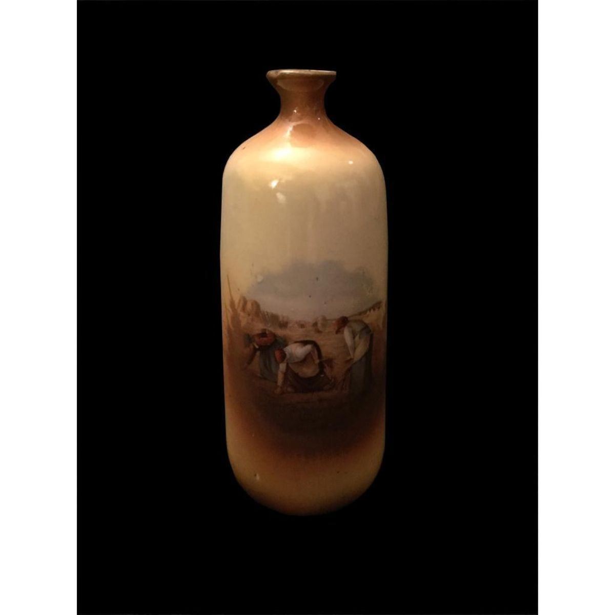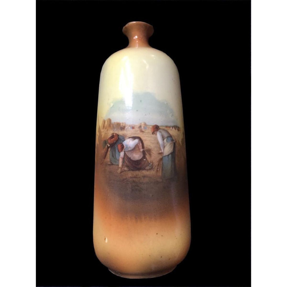 Continental Vase, with a scene after "The Gleaners" by Jean-Francois Millet. Numbered on bottom. Approx 5 1/2" H. * rough area on bottom rim, does not show when vase is standing.