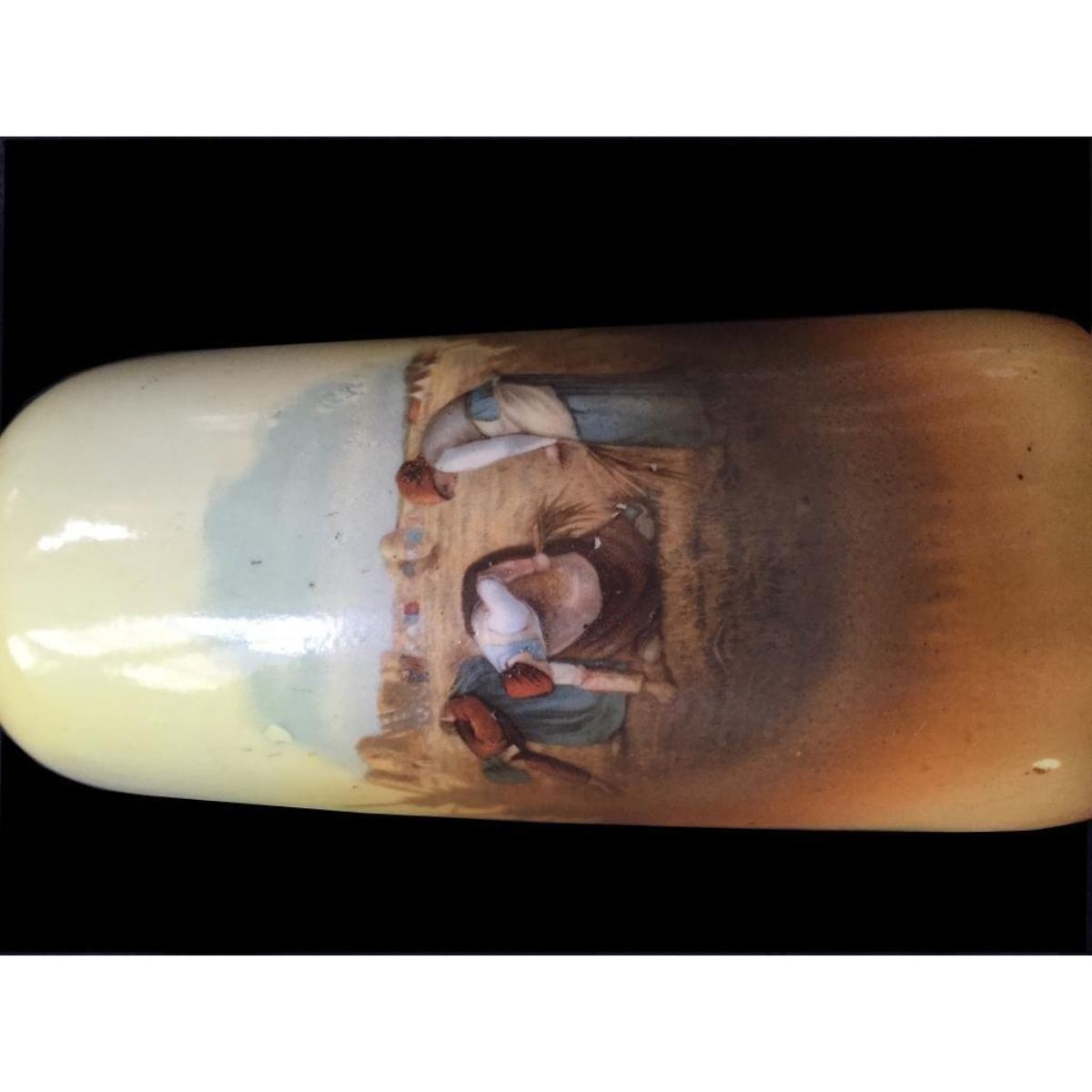 Continental Vase, with a scene after "The Gleaners" by Jean-Francois Millet. Numbered on bottom. Approx 5 1/2" H. * rough area on bottom rim, does not show when vase is standing.
