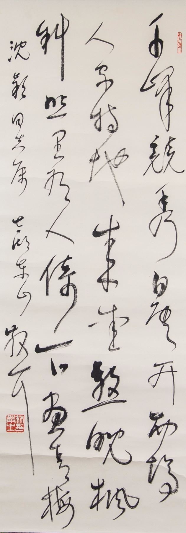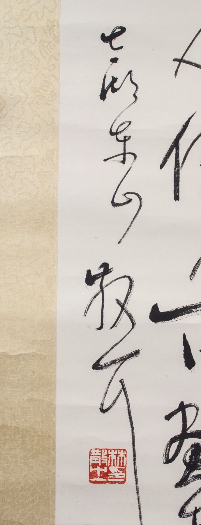 Chinese calligraphy in cursive script; Chinese ink on paper; hanging scroll; signed Lin Sanzhi (1898-1989); inscribed with 1 artist seal; 88 cm x 34 cm
