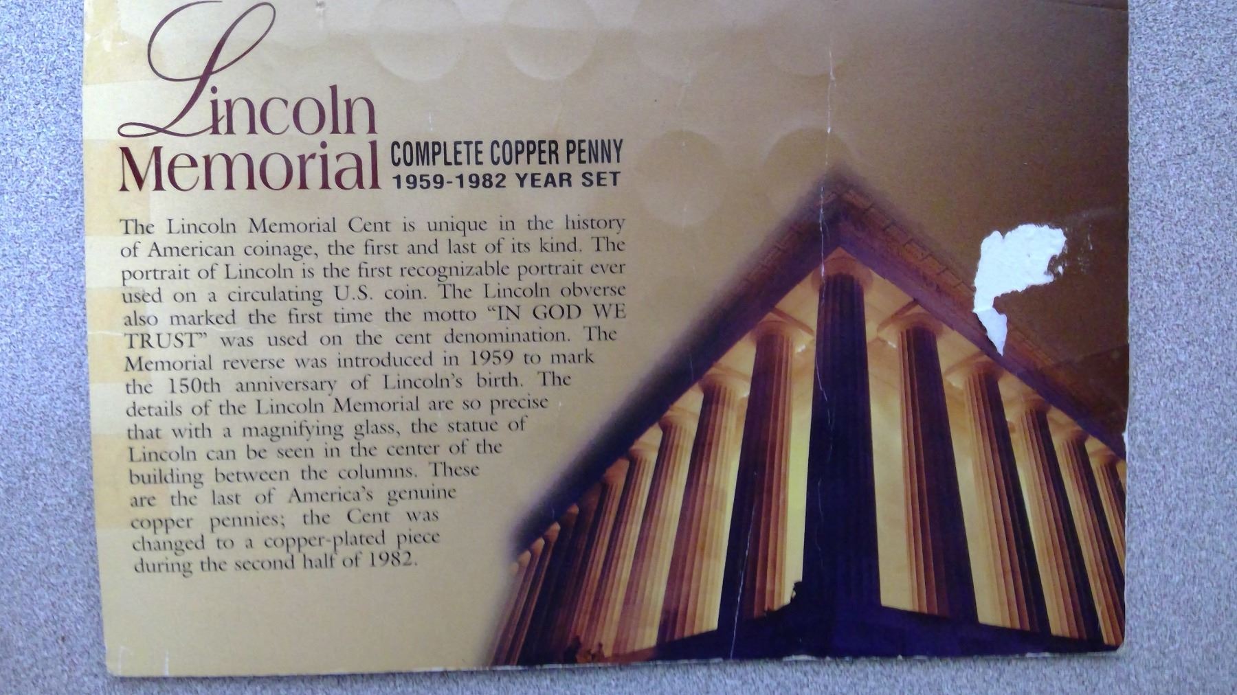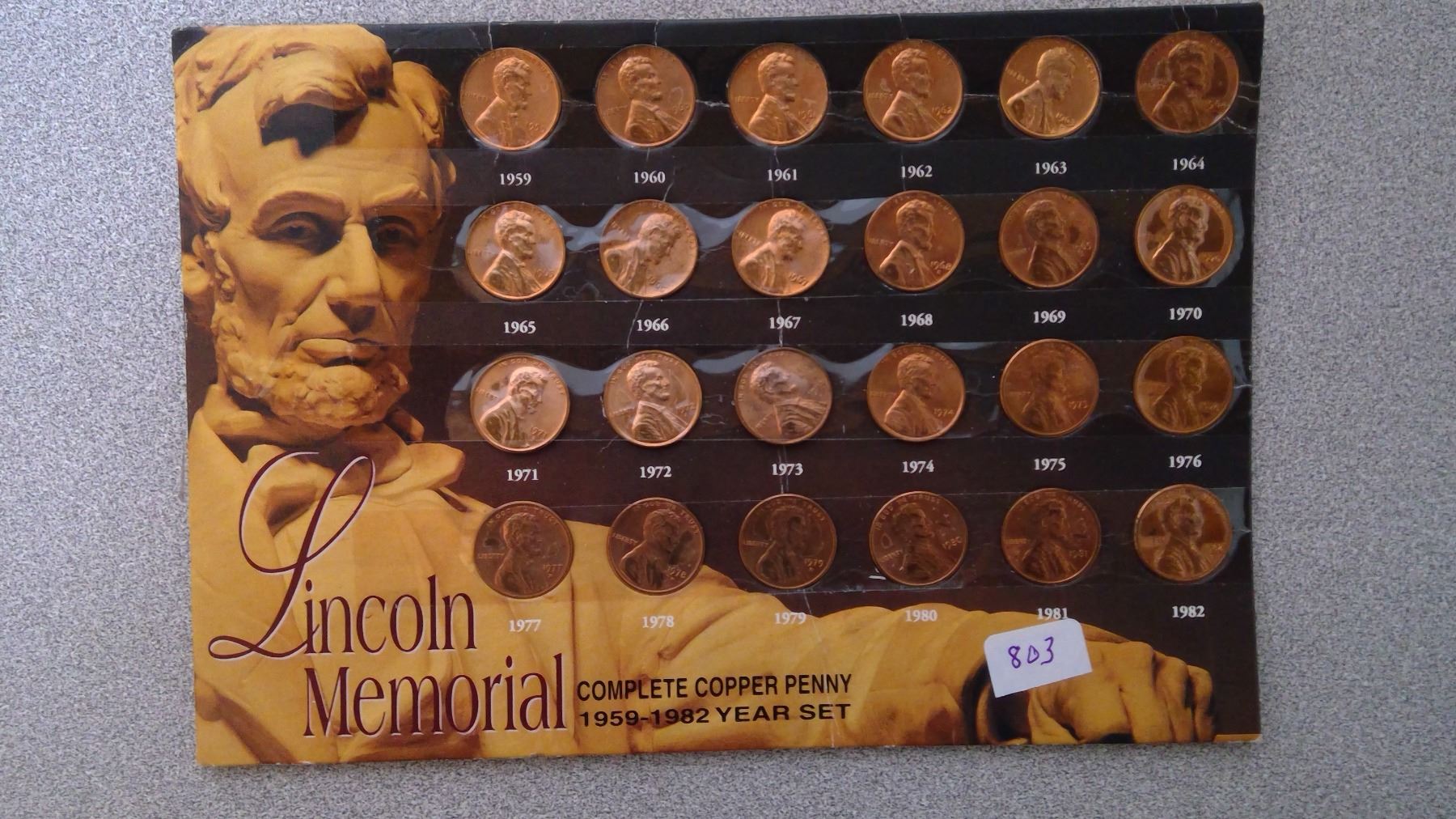 Linc. Mem. Comp. Copper Penny Yr. set 1959-1982 Incl.