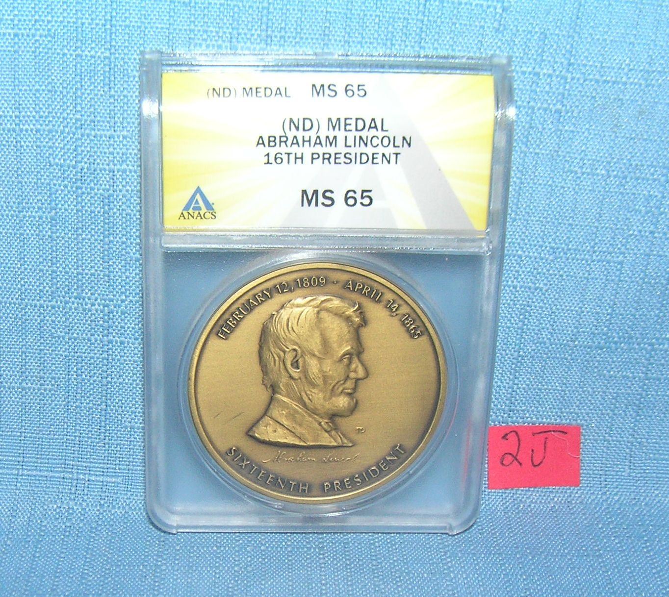 Lincoln 16th President commemorative bronze graded MS65 est. value $100.00-$125.00
