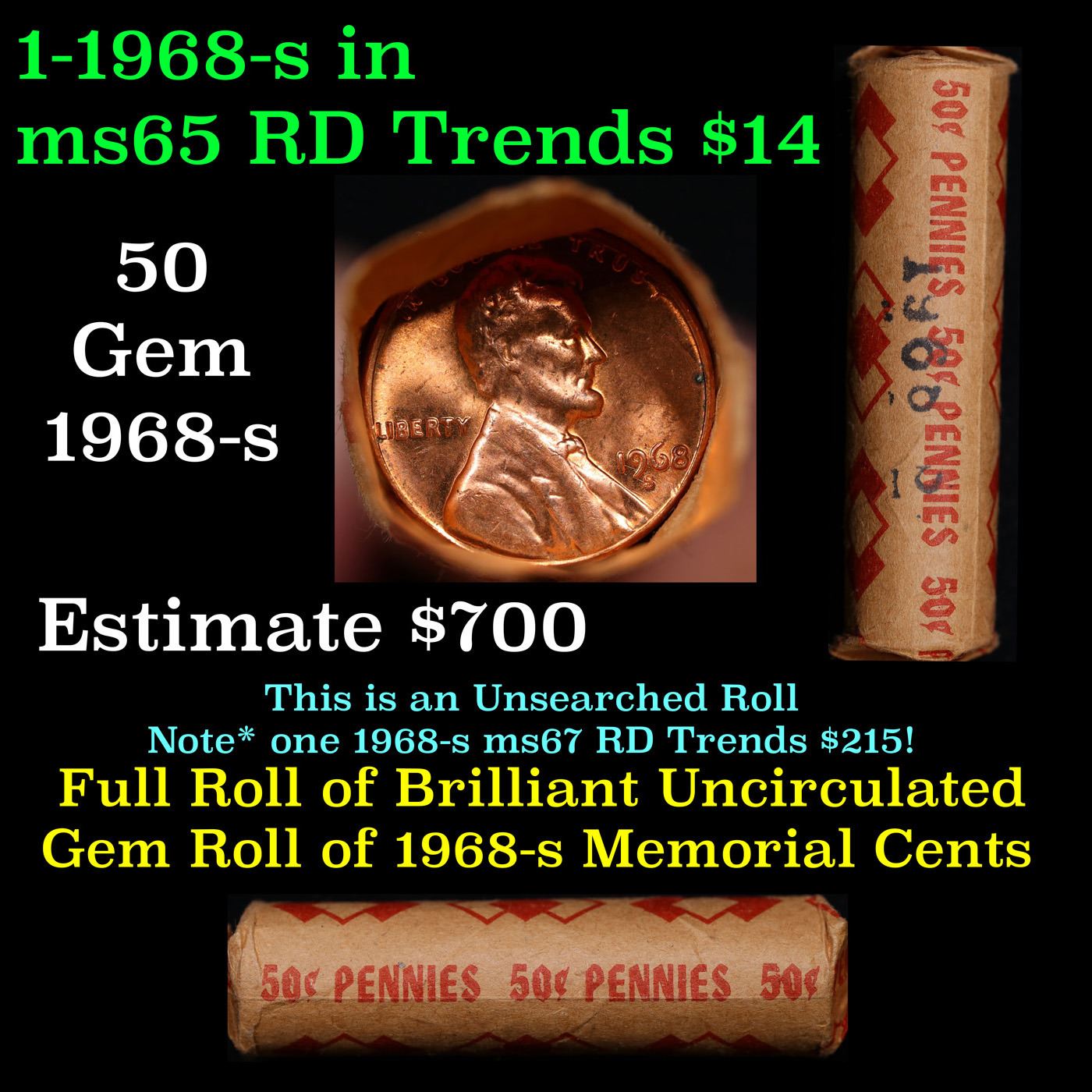 Lincoln 1c roll, 1960-p 50 pcs Bank Wrapper.. A terrific Shotgun roll of Lincoln cents. Most if not all coin should be cherry red.