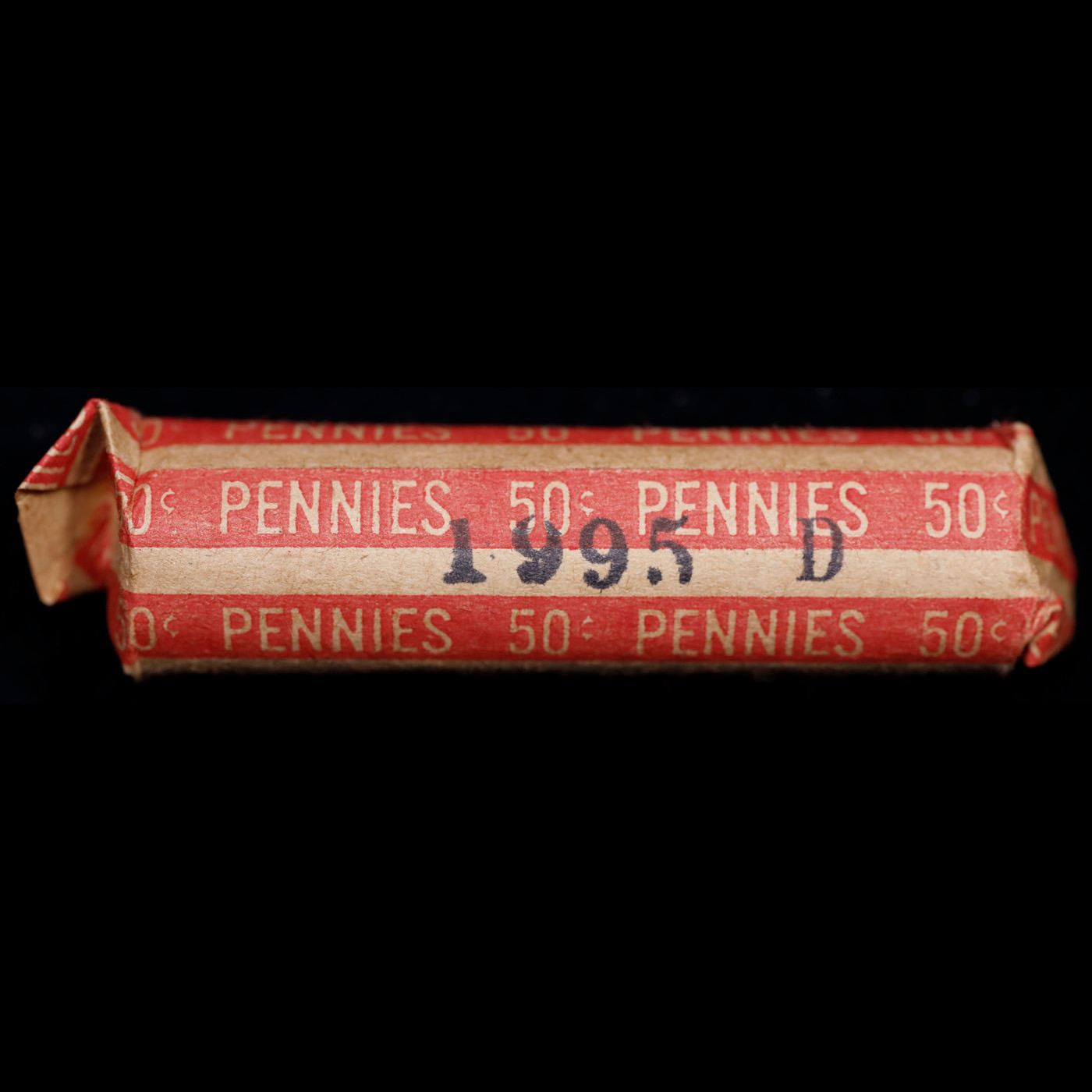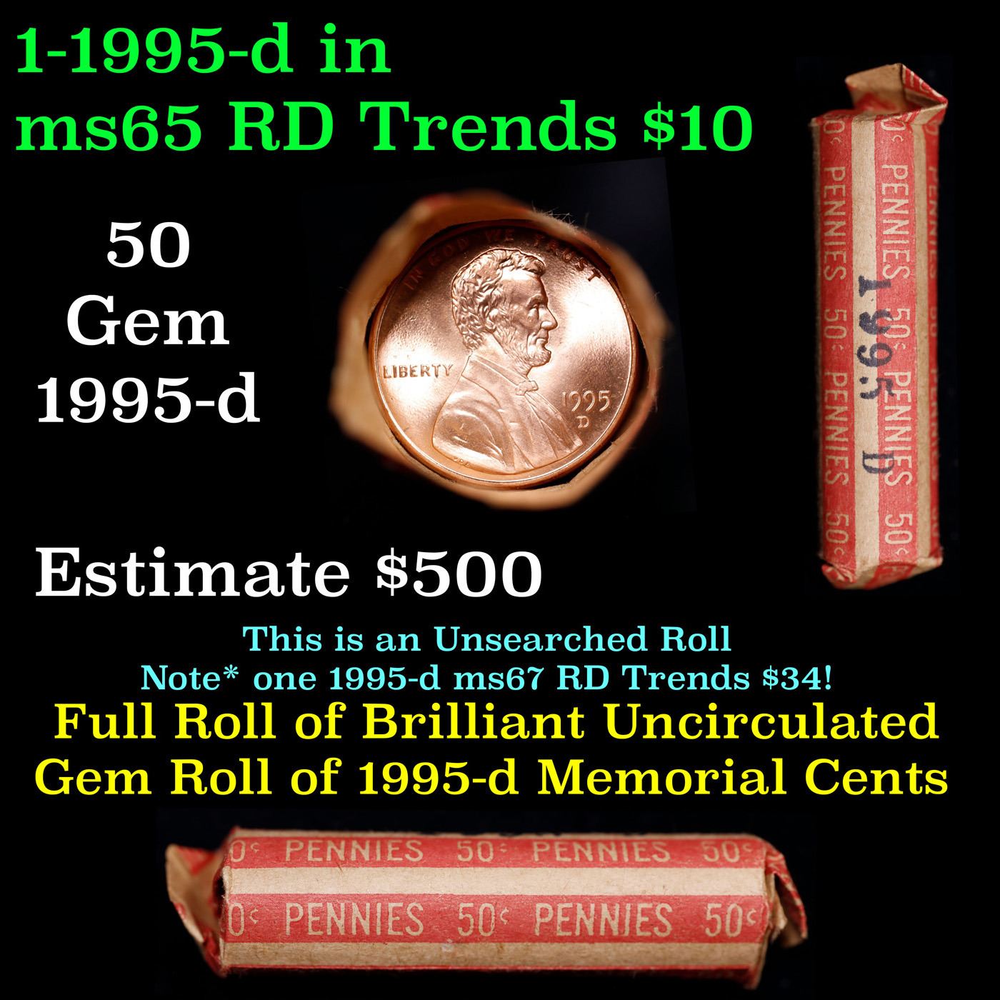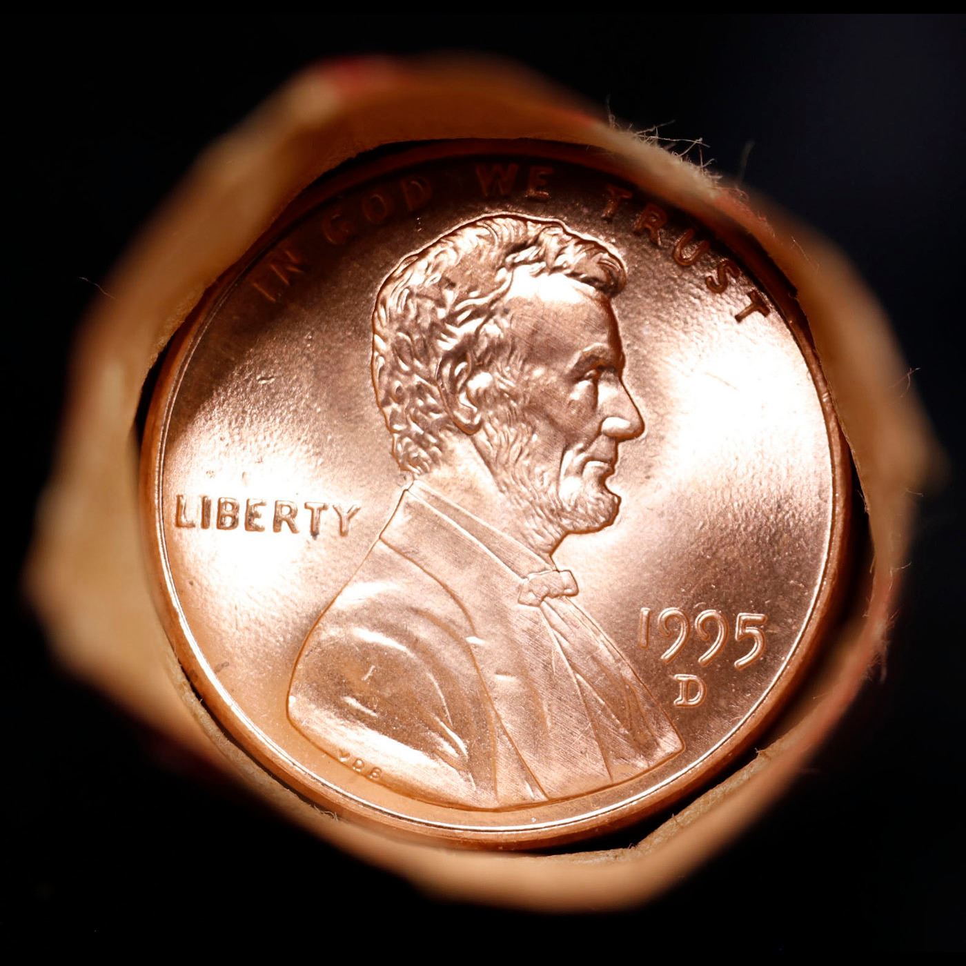 Lincoln 1c roll, 1995-d 50 pcs Wrapper.. A terrific roll of Lincoln cents. Most if not all coin should be cherry red. Trends ms65 rd $10