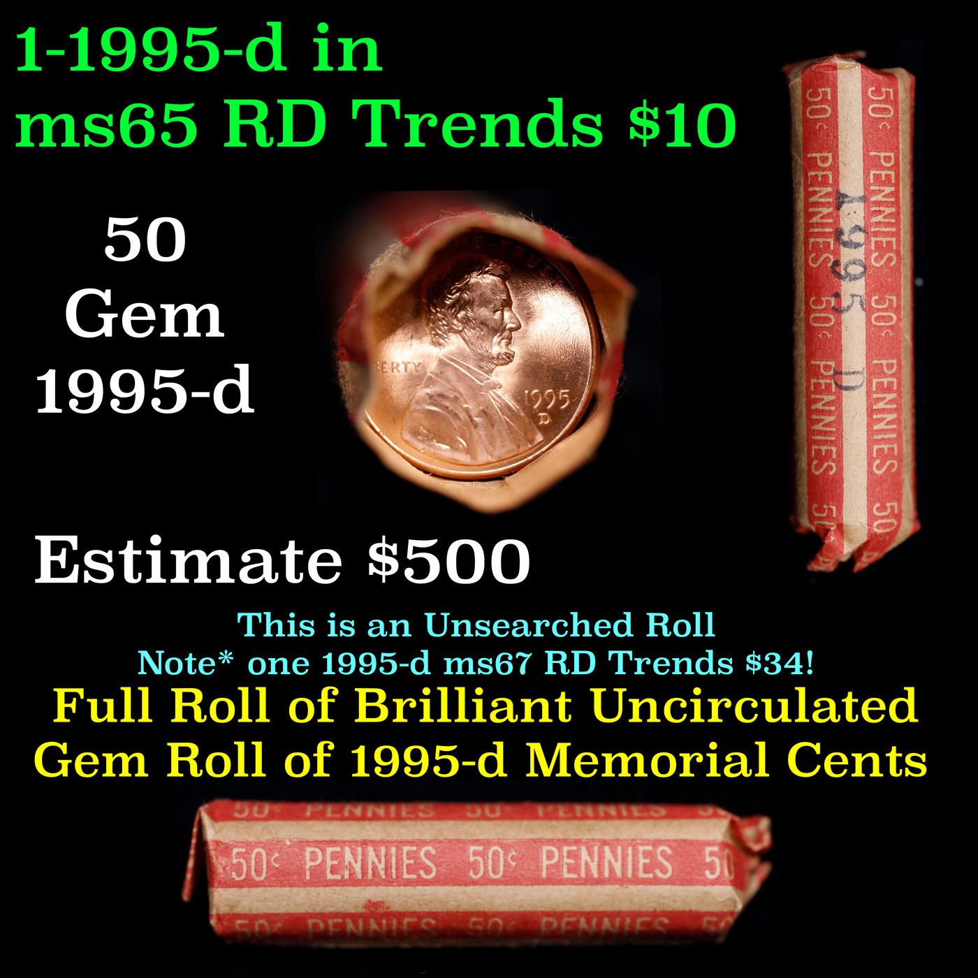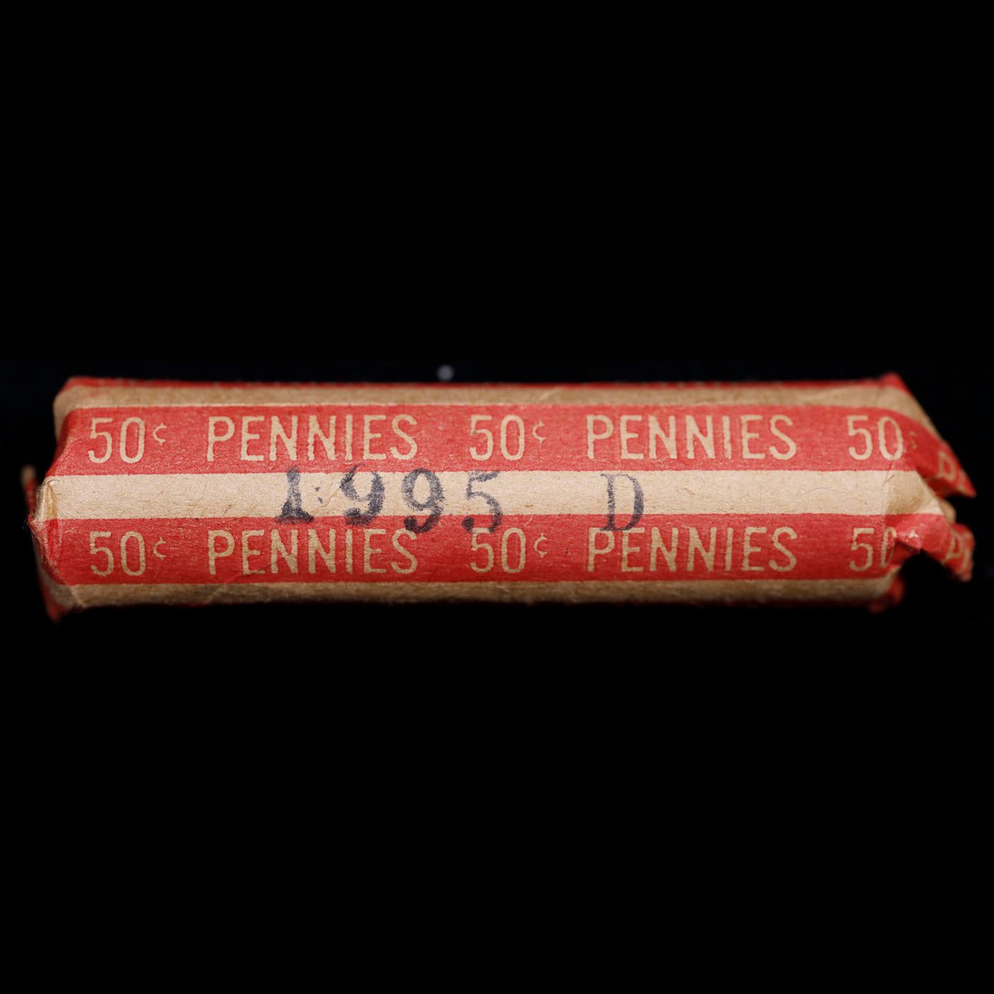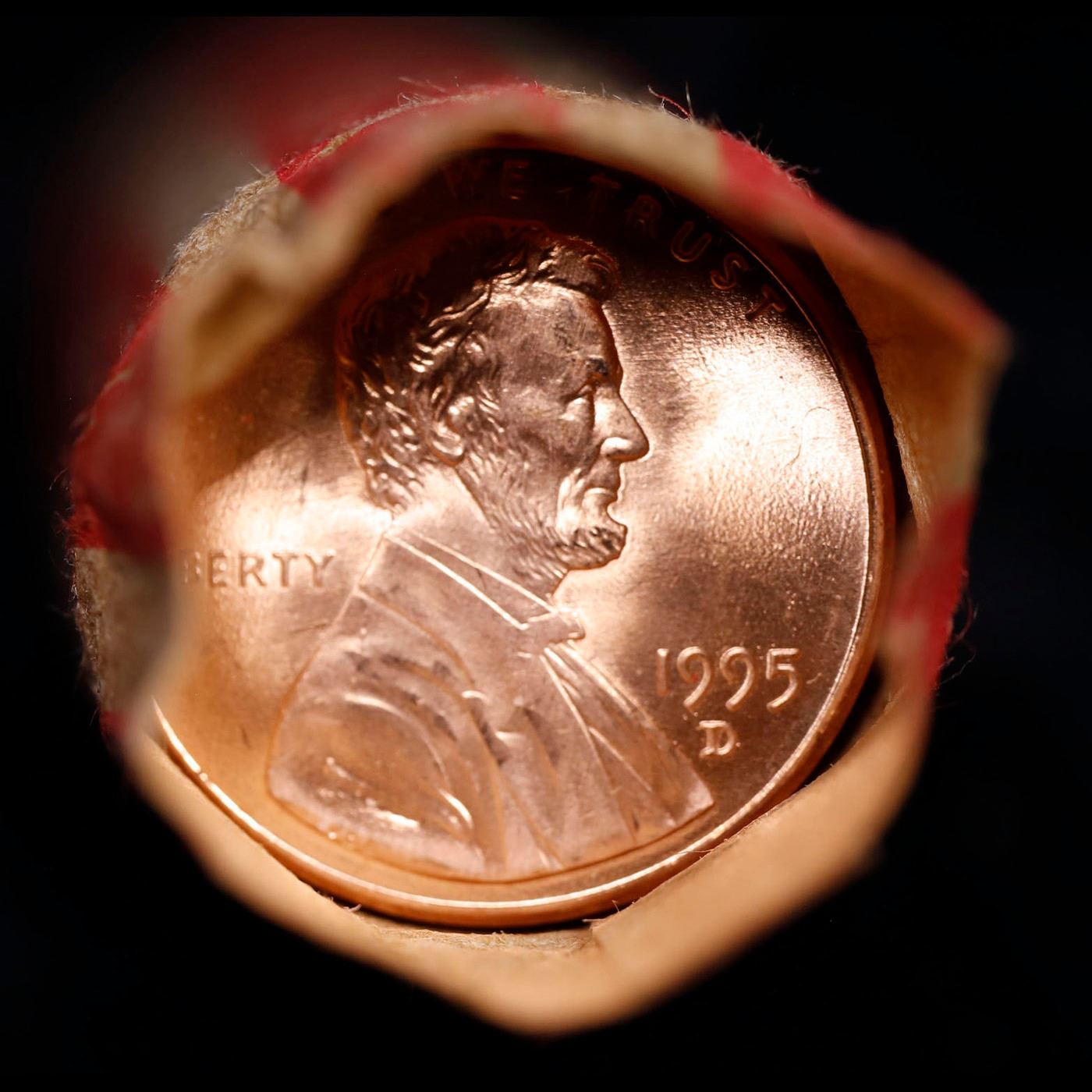 Lincoln 1c roll, 1995-d 50 pcs Wrapper.. A terrific roll of Lincoln cents. Most if not all coin should be cherry red. Trends ms65 rd $10