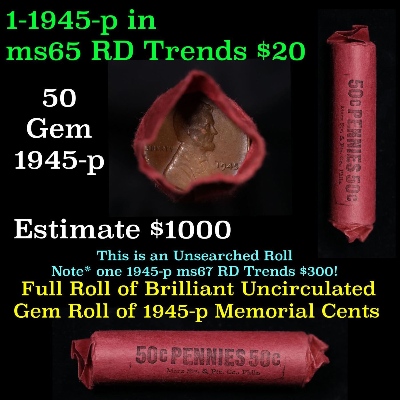Lincoln 1c roll, Mix Date 50 pcs Marx Sty. & Ptg. Co. Philla. Wrapper.. A terrific roll of Lincoln cents. Most if not all coin should be cherry red.