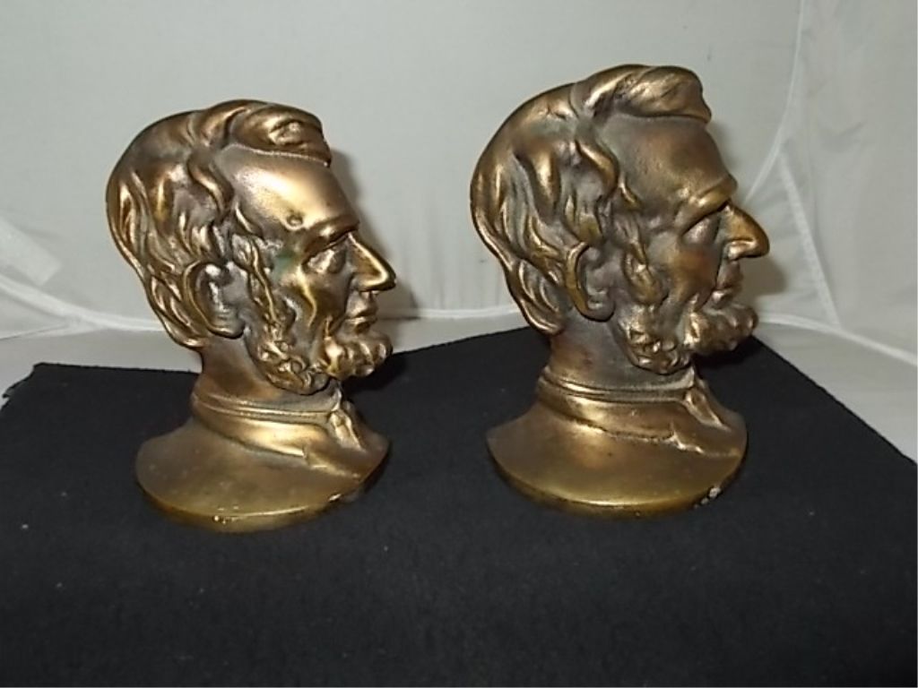 Lincoln Book Ends very good pair of vintage, cast-iron or bronze book ends with Lincolns profile depicted in deep relief. Antique pair in great shape, excellent condition, near mint with only the most minor patina or