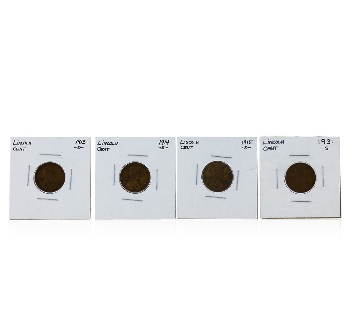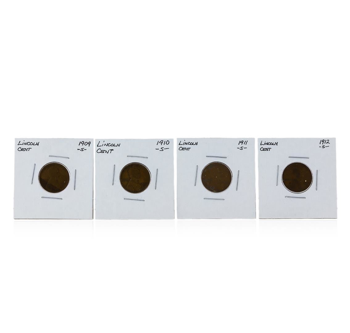 One Lincoln Cent Set of 8 Coins. The set features a 1909 Lincoln Cent, 1910 Lincoln Cent, 1911 Lincoln Cent, and 1912 Lincoln Cent, 1913 Lincoln Cent, 1914 Lincoln Cent, 1915 Lincoln Cent, 1931 Lincoln Cent.