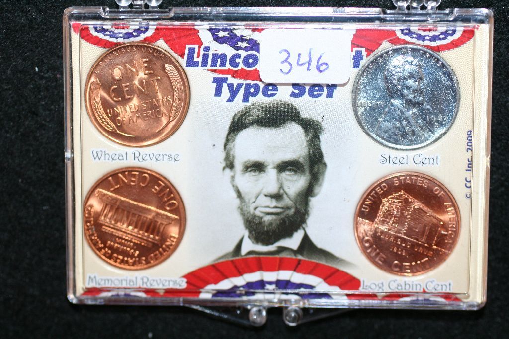 Lincoln Cent Type Set; Steel Cent, Wheat Cent, Memorial Cent & Log Cabin Cent; Lot of 4