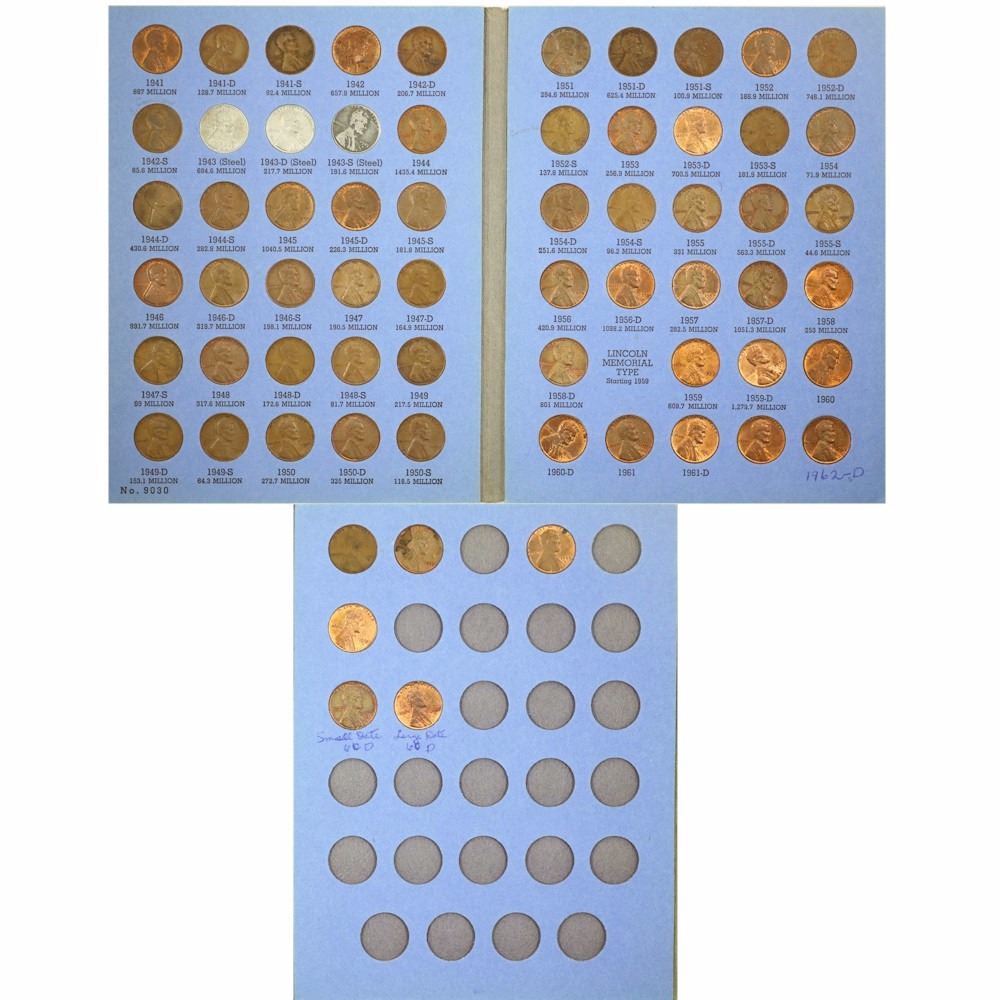 Lincoln Cent collection 1909 to 1960 in 2 x Blue Whitman Books. Some dates missing. Sold as is, no returns.