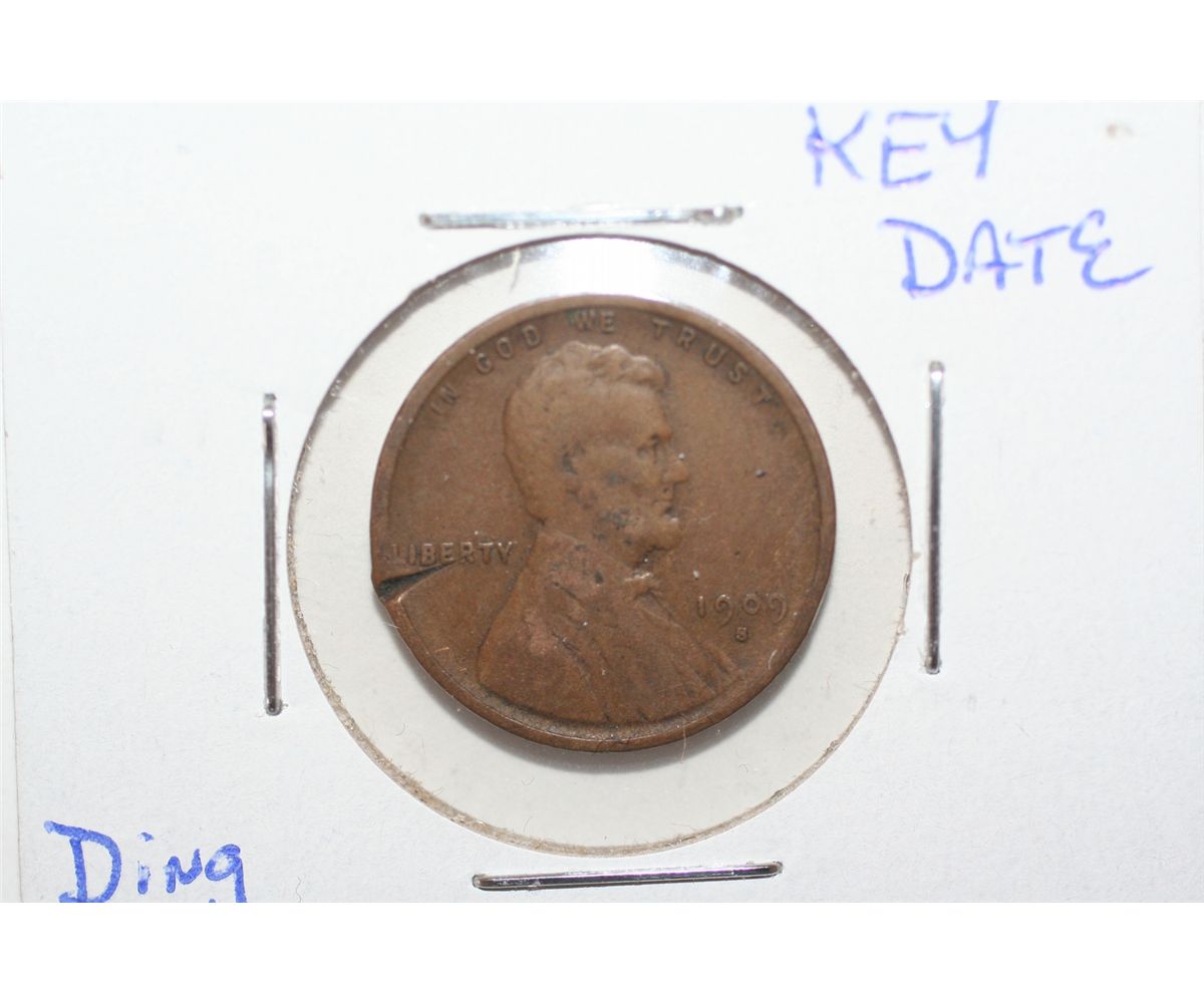 This lot is a 1909-s lincoln cent; ding on obv. (key date)