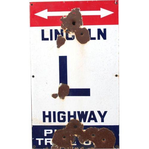 Lincoln Highway Porcelain Directional Sign has some rust 12 x 20"