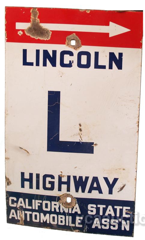 Lincoln Highway Porcelain Sign California State Automobile Ass'n. - 12" x 20"