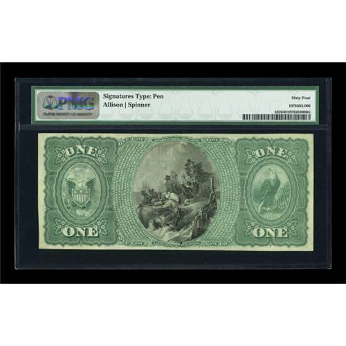 <B>Lincoln, IL</B></I> - $1 Original Fr. 382 <B>The First NB</B></I> Ch. # 2126<BR> A lovely example with blazing colors and wonderful eye appeal. Were it not for a tight margin at the upper right, this note most certainly would have attained the Gem designation. <B>PMG Choice Uncirculated 64.</B></I><BR><BR><b>Shipping:</b> Coins & Currency (<a target="_blank" href="http://www.heritageauctions.com/common/shipping.php">view shipping information</a>)